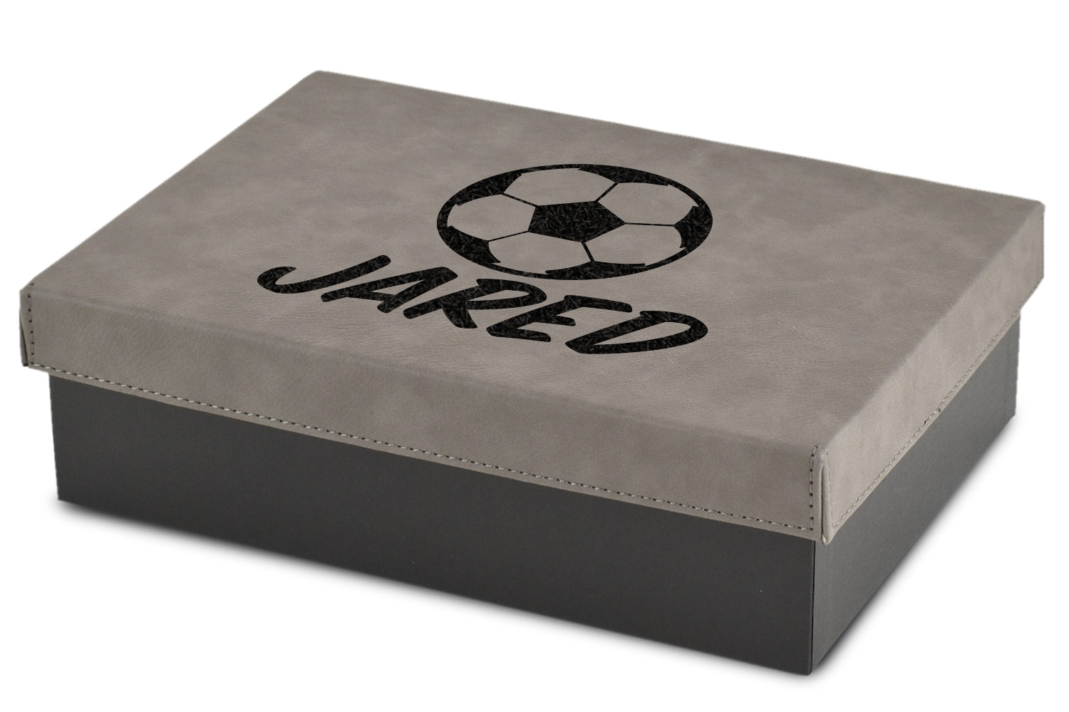 These gift boxes are available in 3 different sizes to accommodate various sized gifts. Available in gray as a neutral color for any occasion as well as to showcase your design boldly. Engraved with a laser this high quality paper board and faux leather gift box is unique and makes any gift stand out.