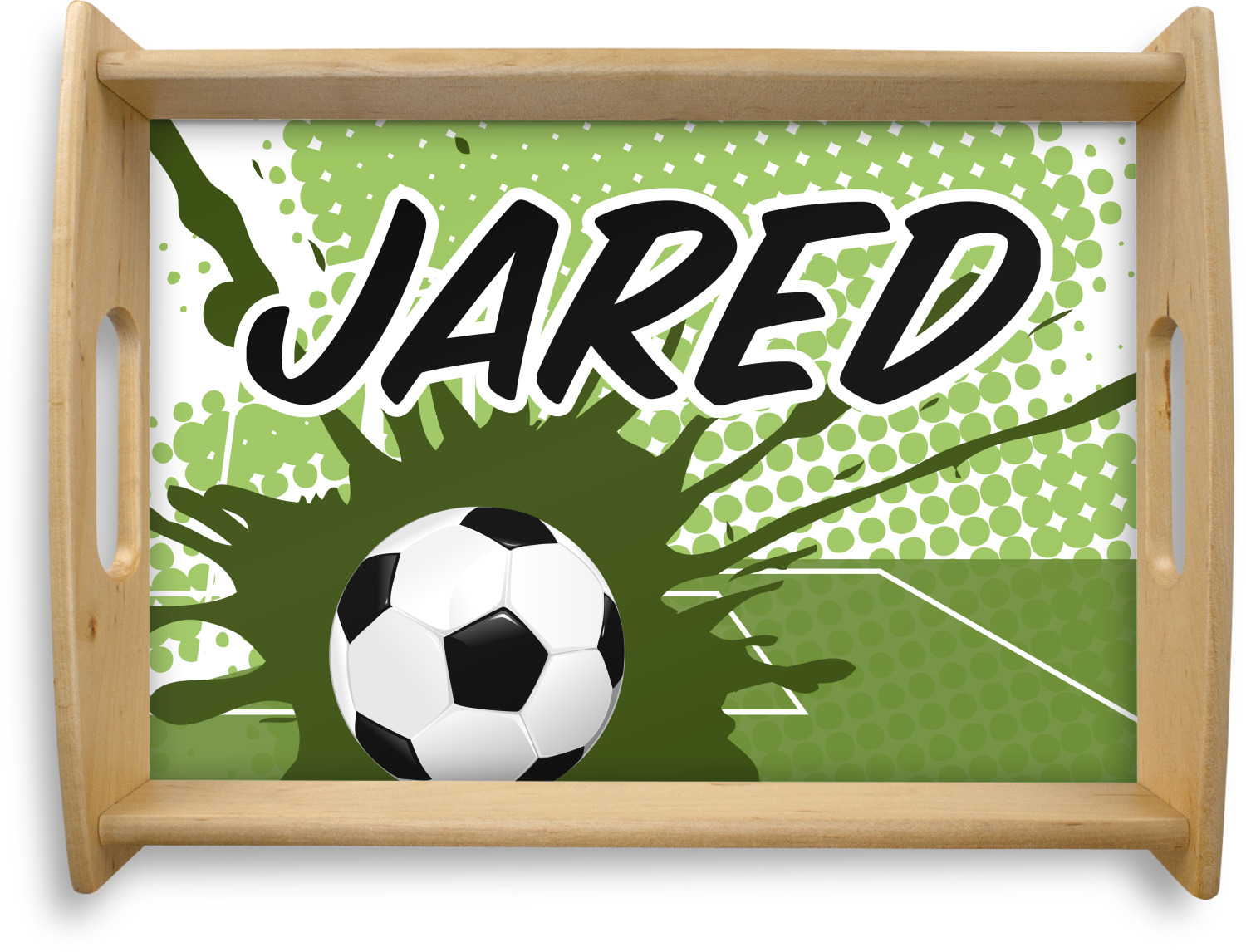 This fun design has a cool abstract background with a soccer field and splatters of different shades of green. There is a soccer ball in the left corner of the design while your personalization goes towards the top. This is a great design for any teen or kid who loves soccer. Easily change the neutral colors to something more masculine or feminine.