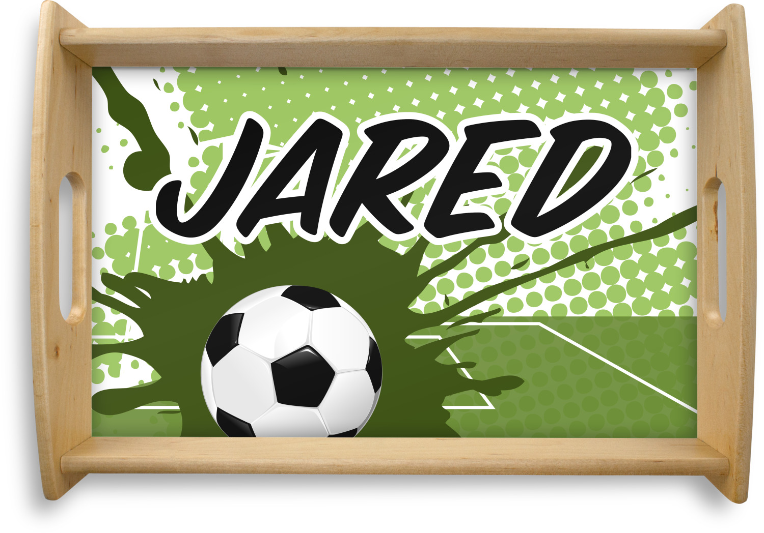 This fun design has a cool abstract background with a soccer field and splatters of different shades of green. There is a soccer ball in the left corner of the design while your personalization goes towards the top. This is a great design for any teen or kid who loves soccer. Easily change the neutral colors to something more masculine or feminine.