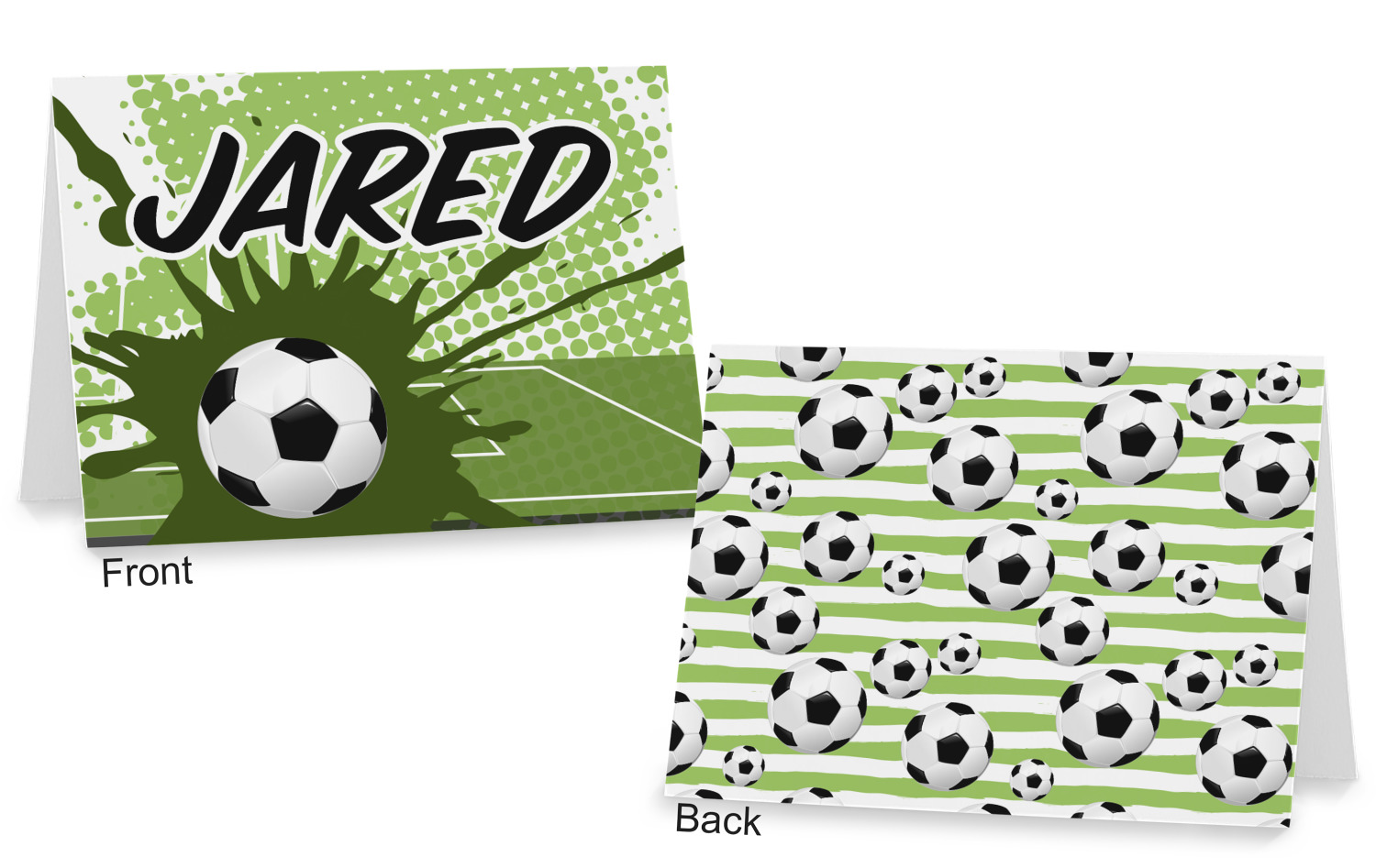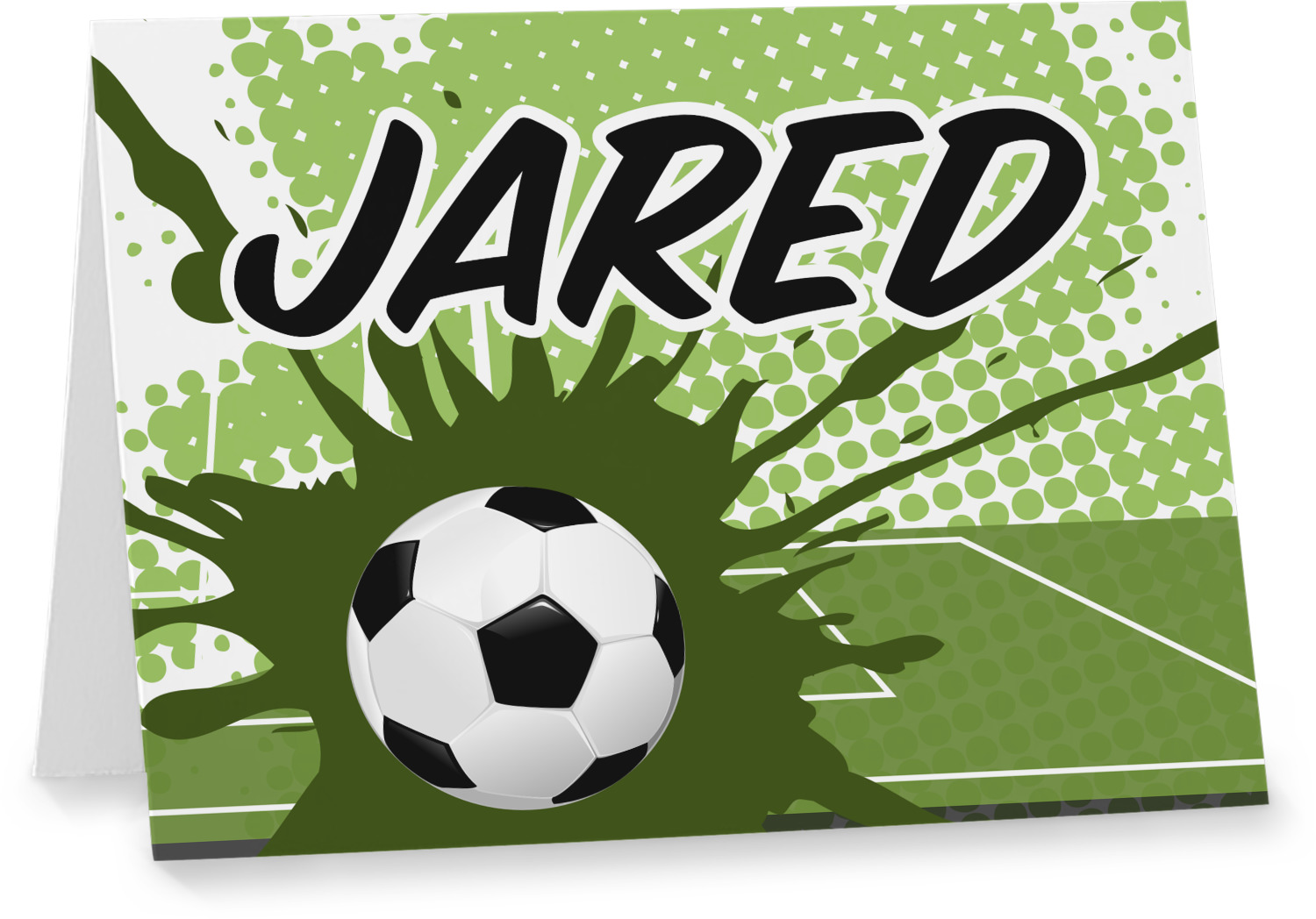 This fun design has a cool abstract background with a soccer field and splatters of different shades of green. There is a soccer ball in the left corner of the design while your personalization goes towards the top. This is a great design for any teen or kid who loves soccer. Easily change the neutral colors to something more masculine or feminine.