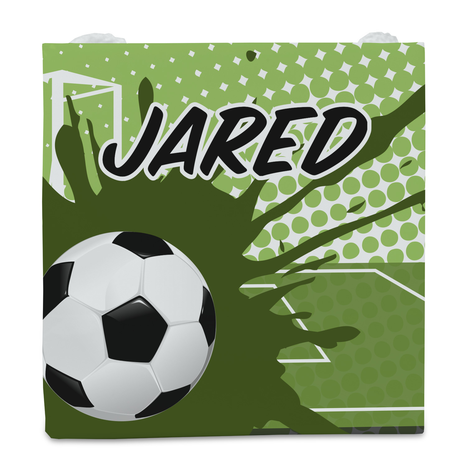 This fun design has a cool abstract background with a soccer field and splatters of different shades of green. There is a soccer ball in the left corner of the design while your personalization goes towards the top. This is a great design for any teen or kid who loves soccer. Easily change the neutral colors to something more masculine or feminine.