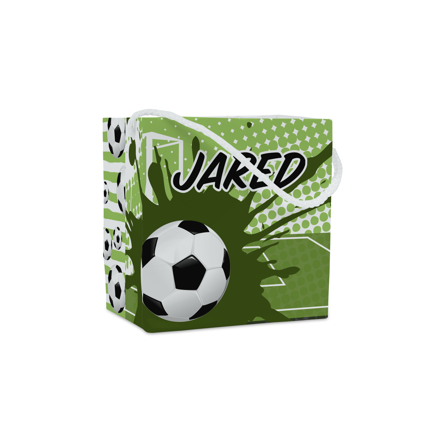 These party favor bags are approx. 5.25" tall x 5.25" wide and 3" deep. They are perfectly sized for party favors such as customized ornaments, specialty chocolates or cookies, etc. The bags will also fit multiple small favors.
