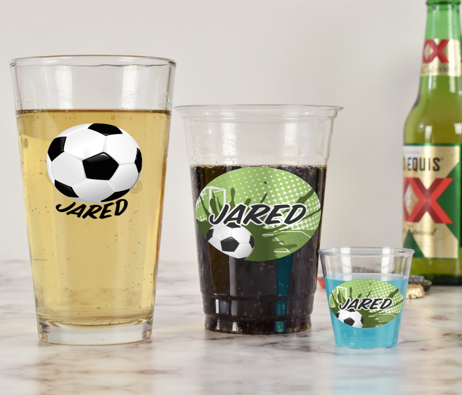 With these glasses you will get your choice of 2 content items on them. Perfect for company promotion or if you own a small restaurant or bar order these to perfectly match your business. Once designed we will print your design directly onto the glass and then a clear coat applied over it to ensure the print lasts for years to come.