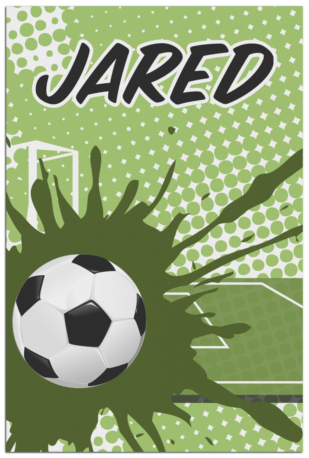 This fun design has a cool abstract background with a soccer field and splatters of different shades of green. There is a soccer ball in the left corner of the design while your personalization goes towards the top. This is a great design for any teen or kid who loves soccer. Easily change the neutral colors to something more masculine or feminine.