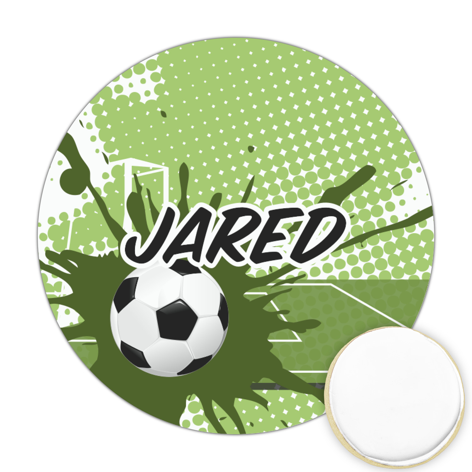 This fun design has a cool abstract background with a soccer field and splatters of different shades of green. There is a soccer ball in the left corner of the design while your personalization goes towards the top. This is a great design for any teen or kid who loves soccer. Easily change the neutral colors to something more masculine or feminine.