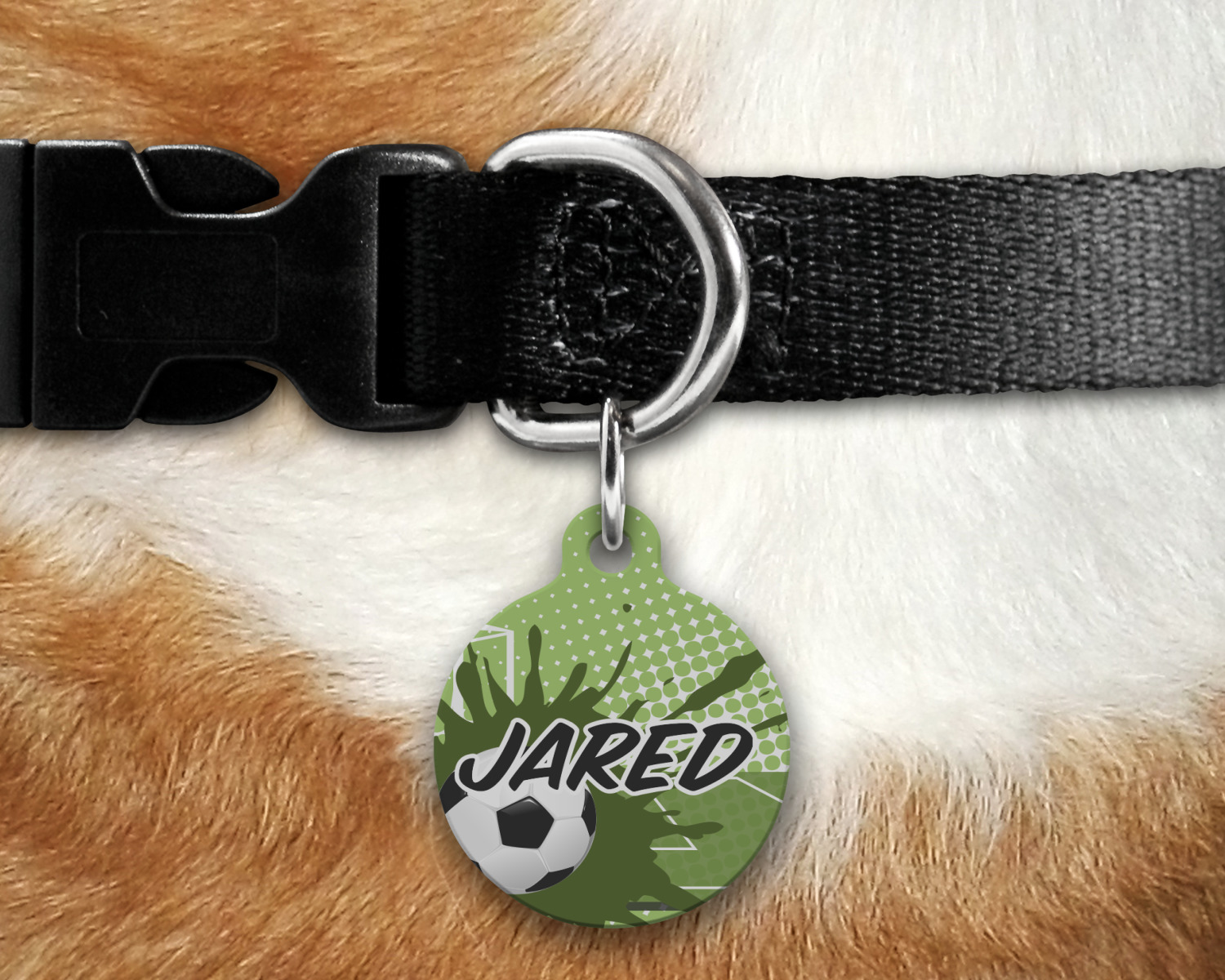 Go ahead; skip the monotony of plain pet ID tags with your very own, customized & personalized, round pet tag! This pet ID tag, fitting for both cats and dogs, will catch the eye of any onlooker (humans, canines, and felines, alike!) and accentuate your pet's individual personality.