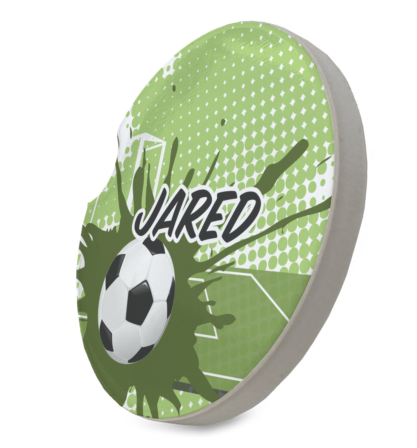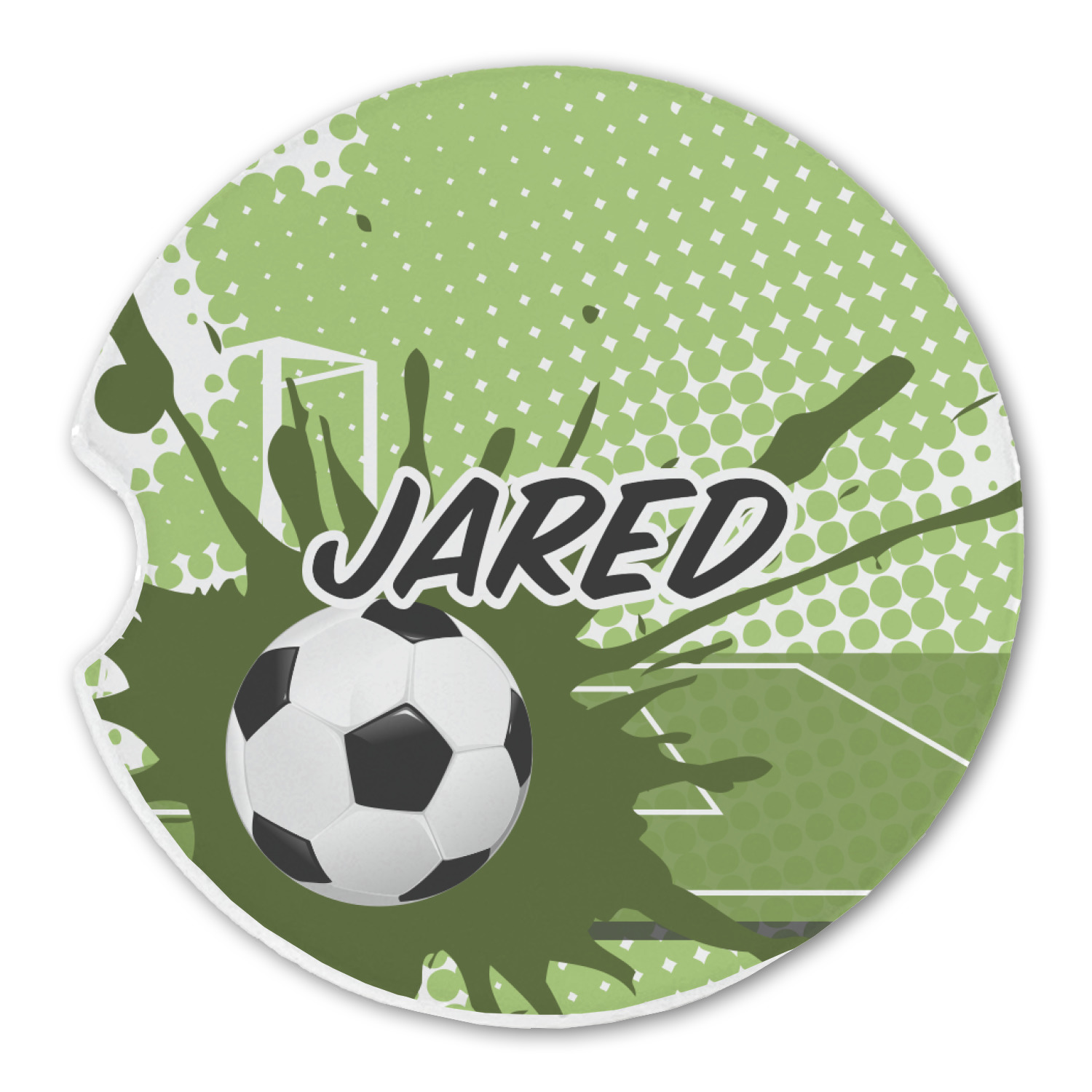 This fun design has a cool abstract background with a soccer field and splatters of different shades of green. There is a soccer ball in the left corner of the design while your personalization goes towards the top. This is a great design for any teen or kid who loves soccer. Easily change the neutral colors to something more masculine or feminine.