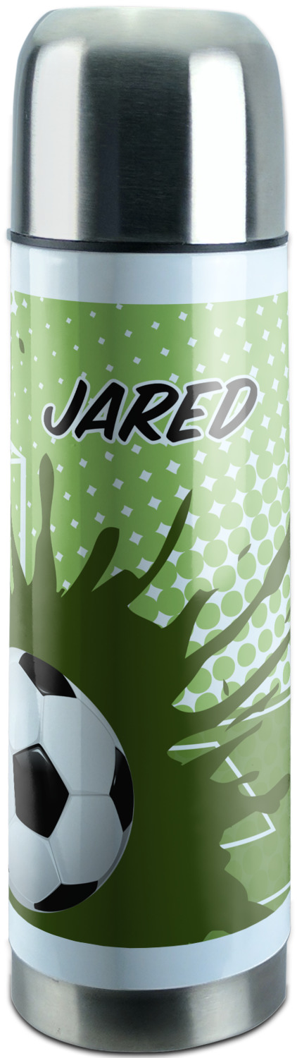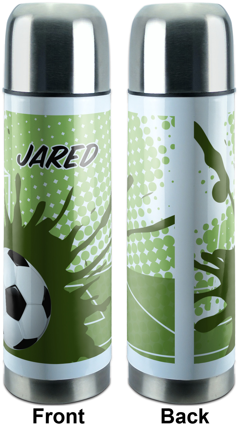 Manufactured from stainless steel, this thermos is built durably and double-walled insulated to preserve the temperature of your drink for hours. It also features a screw off lid that is made to also function as a small cup. Upon unscrewing this part of the thermos bottle, a pop-open, pour feature emerges. This feature allows you to slowly pour your beverage into your lid, ensuring a steady, controlled pour into your lid or other cup. With a capacity of 25 ounces, these large thermoses can hold several servings of your favorite beverage. Your customization is displayed all around the bottle with bright, vibrant color.