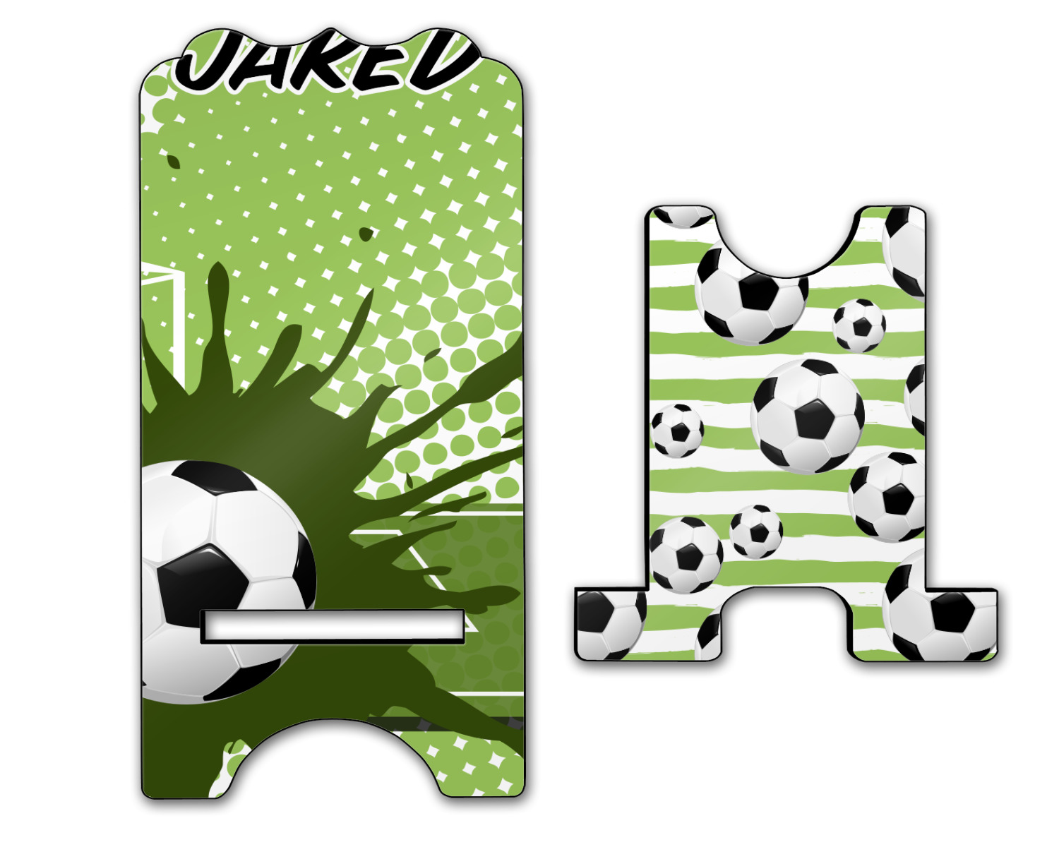 This fun design has a cool abstract background with a soccer field and splatters of different shades of green. There is a soccer ball in the left corner of the design while your personalization goes towards the top. This is a great design for any teen or kid who loves soccer. Easily change the neutral colors to something more masculine or feminine.
