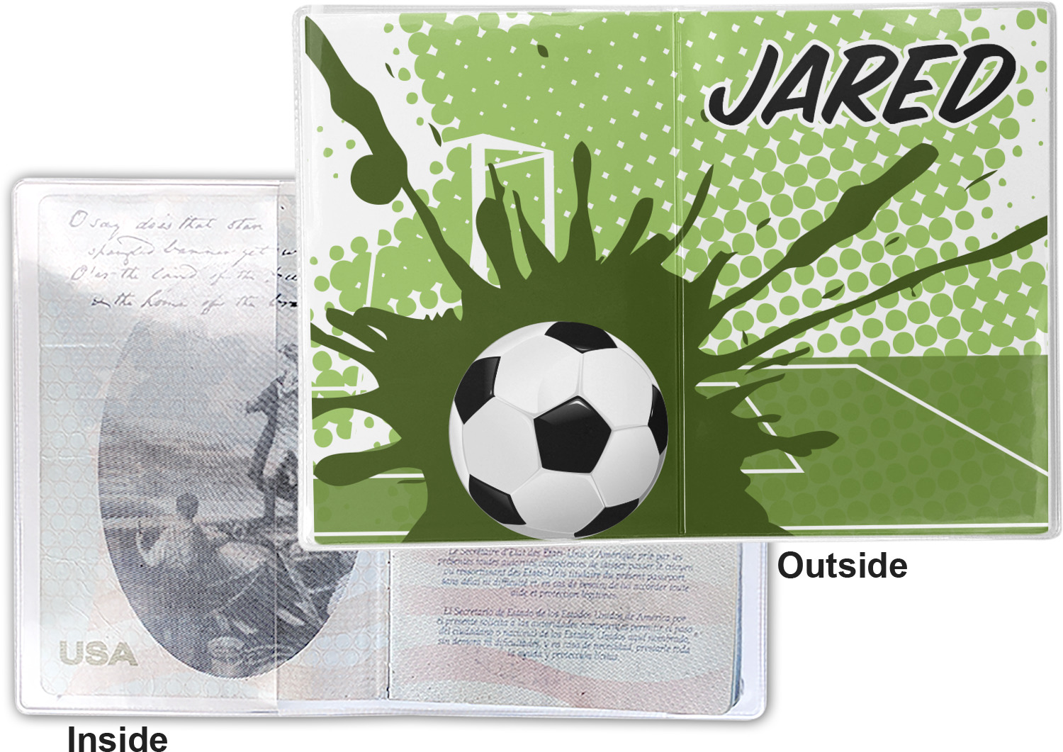This cover is made of a sturdy clear vinyl with a personalized vinyl insert inside. There is a large and a small pocket on either side to hold the covers of your passport easily and firmly. The passport holder is approximately 7.5" x 5.25", the perfect size to snugly fit your passport. This slim cover is the perfect way to protect your passport without being one more bulky item you have to carry.
