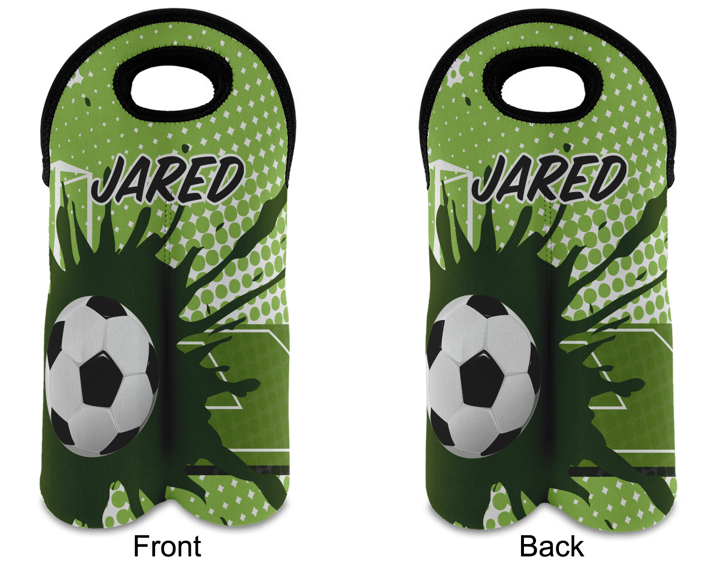 These tote bags are insulated to keep the bottles cold and have a stitched separation down the middle and double handles to keep the two bottles safe and secure during travels.