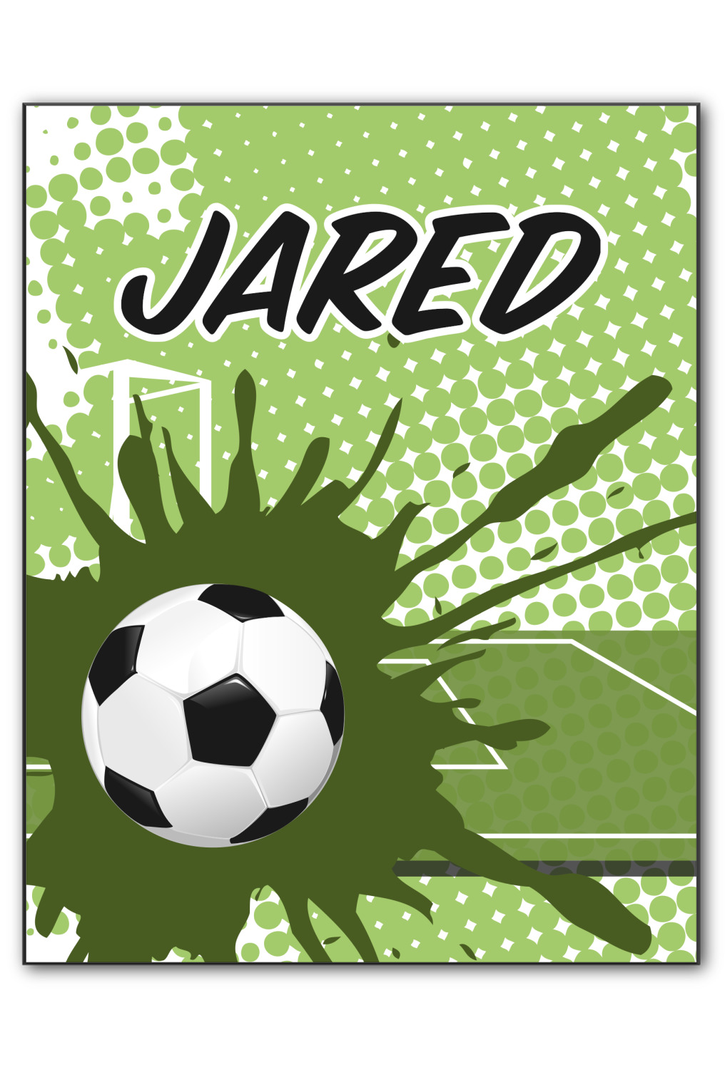 This fun design has a cool abstract background with a soccer field and splatters of different shades of green. There is a soccer ball in the left corner of the design while your personalization goes towards the top. This is a great design for any teen or kid who loves soccer. Easily change the neutral colors to something more masculine or feminine.