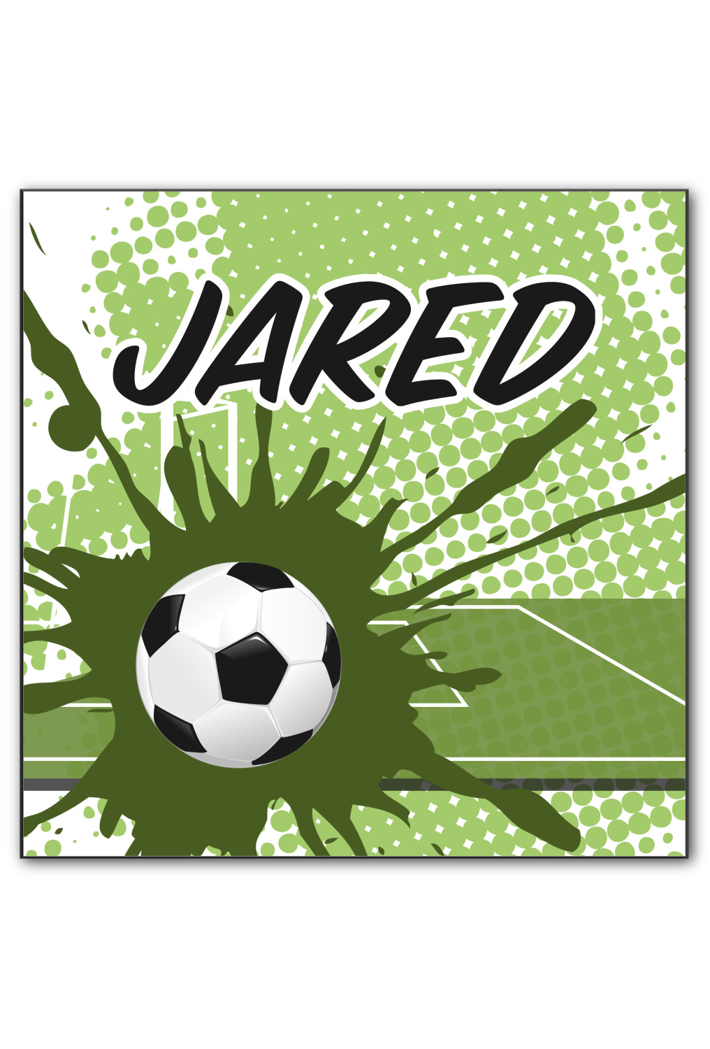 This fun design has a cool abstract background with a soccer field and splatters of different shades of green. There is a soccer ball in the left corner of the design while your personalization goes towards the top. This is a great design for any teen or kid who loves soccer. Easily change the neutral colors to something more masculine or feminine.