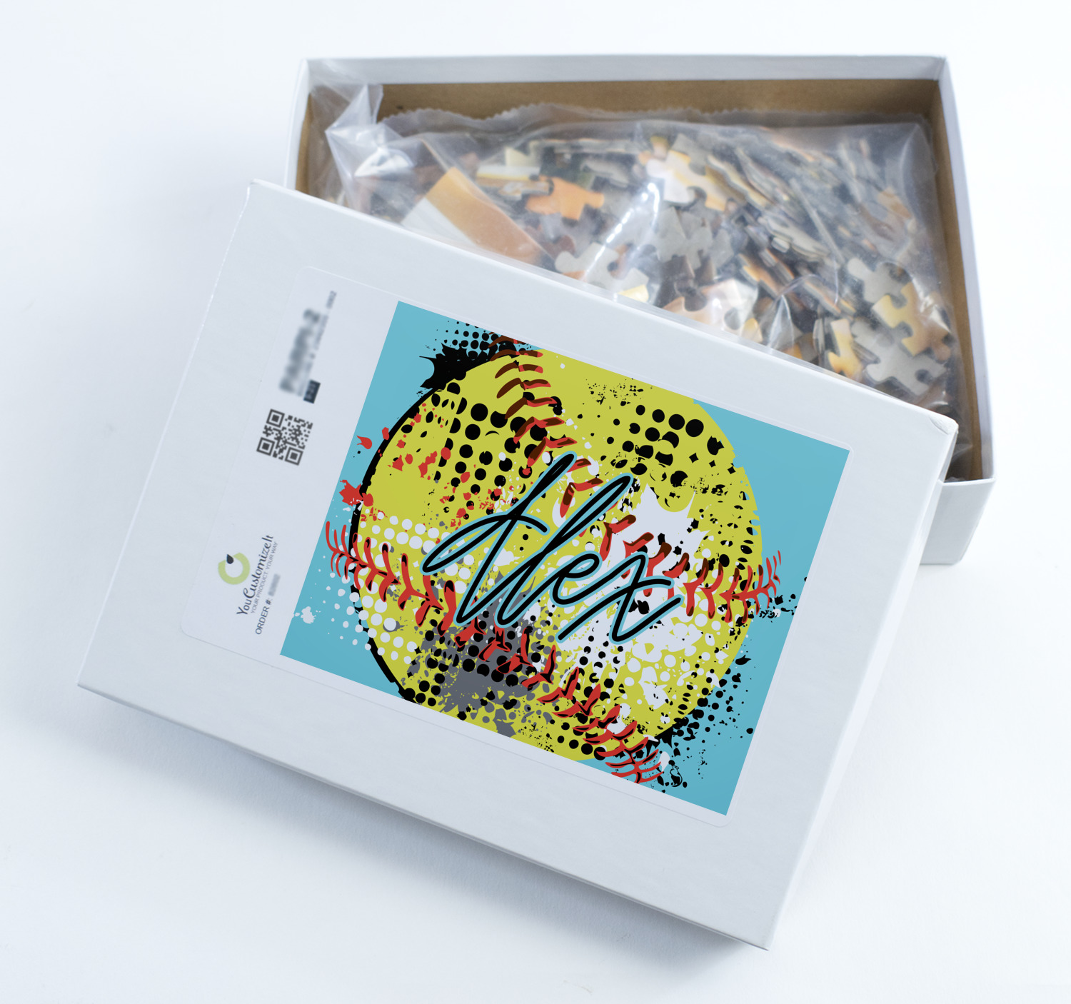 You can also upload your logo or art that you or your kids drew. To create more challenging jigsaw puzzles, you can create a pattern from with your logo or artwork. You can also add other elements such as text or personalization.