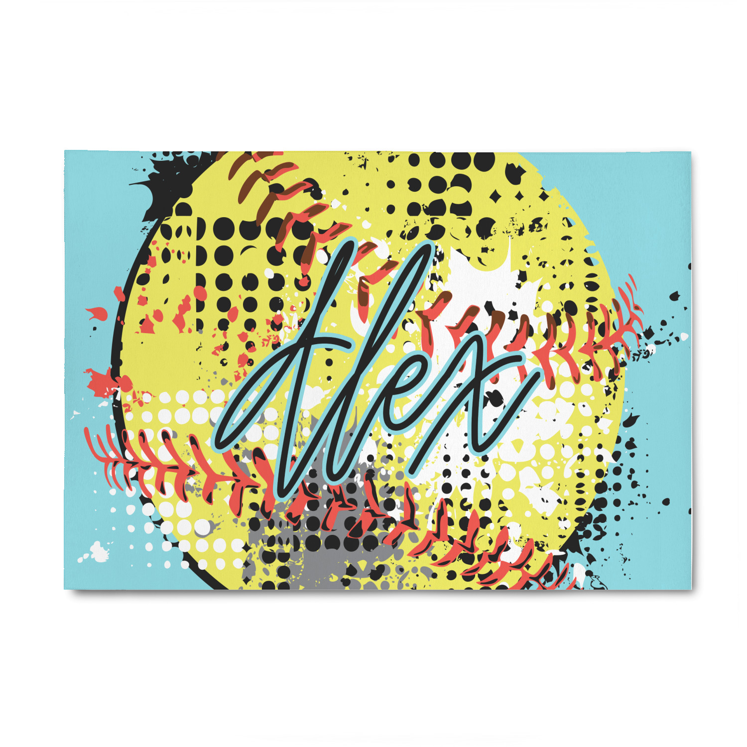 This design is a blast of fun colors. You'll find a light teal / turquoise, bright yellow-green, red-orange, and black. The main image is a softball with splatters around it creating a feeling of movement. The coordinating design displays silhouettes of softball players that look like they're in action. This is the perfect fun design for any teen girl that just loves softball!
