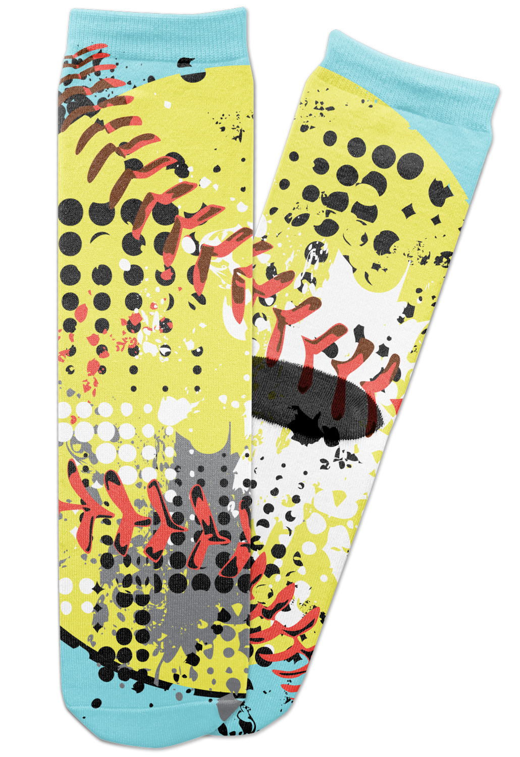 This design is a blast of fun colors. You'll find a light teal / turquoise, bright yellow-green, red-orange, and black. The main image is a softball with splatters around it creating a feeling of movement. The coordinating design displays silhouettes of softball players that look like they're in action. This is the perfect fun design for any teen girl that just loves softball!