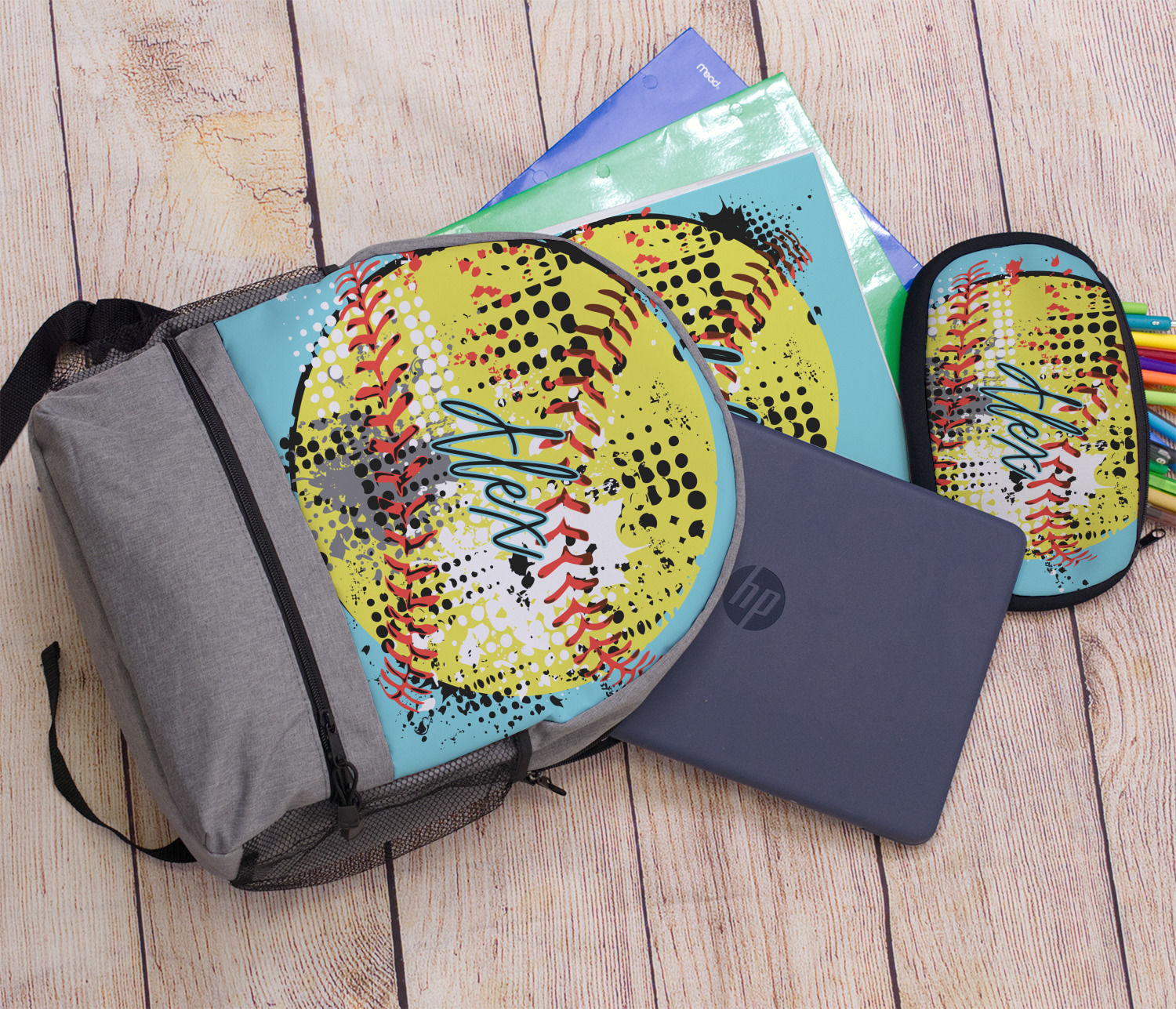 This design is a blast of fun colors. You'll find a light teal / turquoise, bright yellow-green, red-orange, and black. The main image is a softball with splatters around it creating a feeling of movement. The coordinating design displays silhouettes of softball players that look like they're in action. This is the perfect fun design for any teen girl that just loves softball!