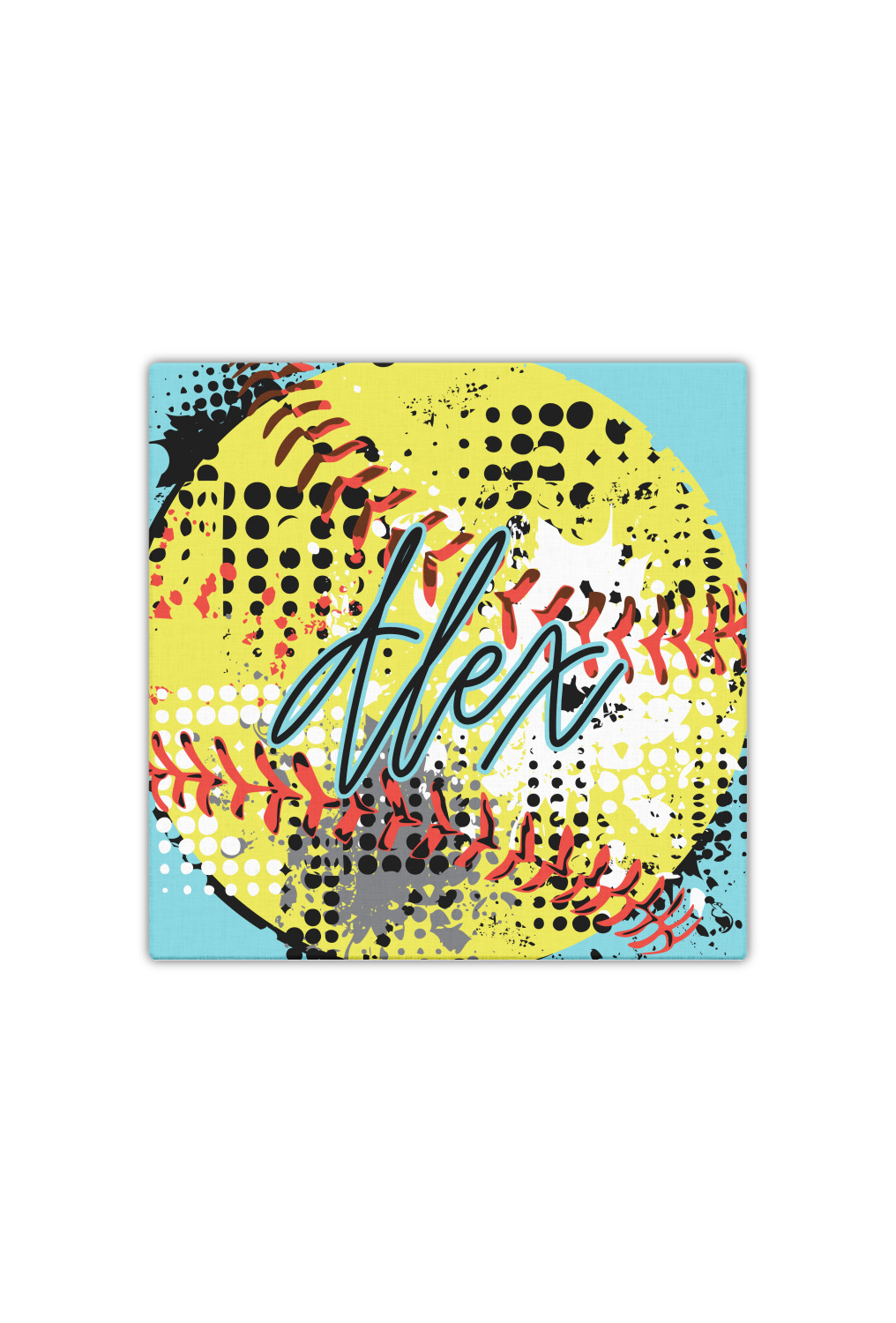This design is a blast of fun colors. You'll find a light teal / turquoise, bright yellow-green, red-orange, and black. The main image is a softball with splatters around it creating a feeling of movement. The coordinating design displays silhouettes of softball players that look like they're in action. This is the perfect fun design for any teen girl that just loves softball!