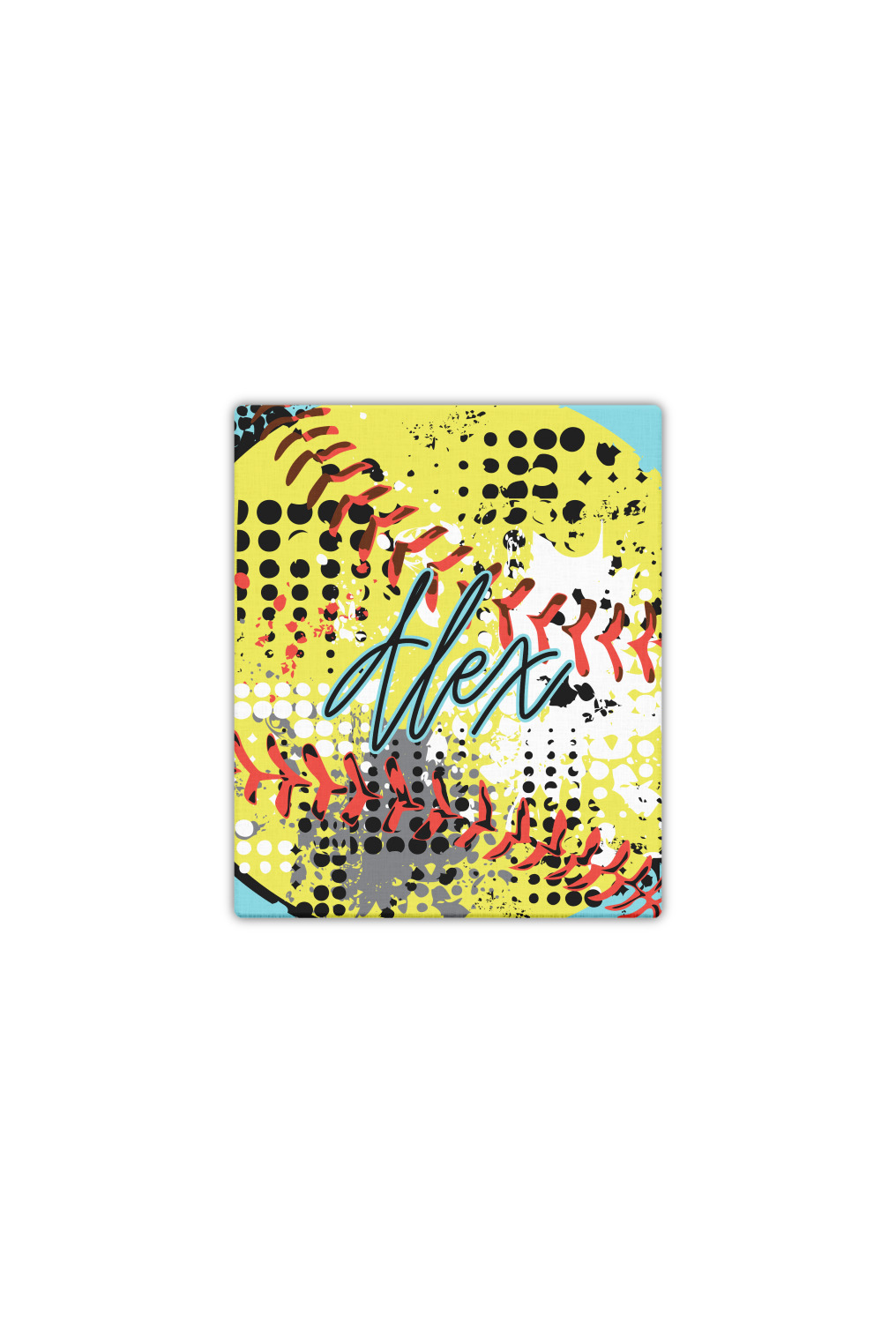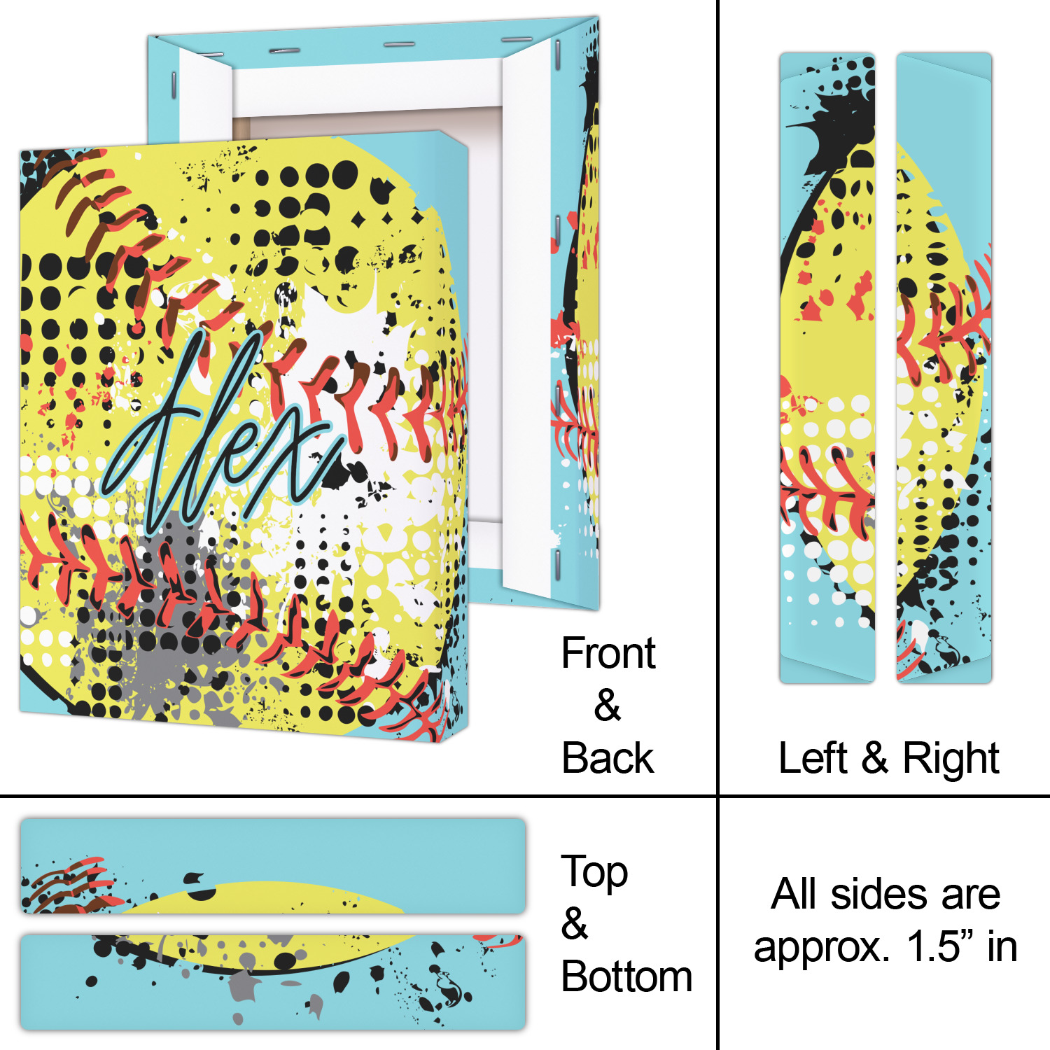 This design is a blast of fun colors. You'll find a light teal / turquoise, bright yellow-green, red-orange, and black. The main image is a softball with splatters around it creating a feeling of movement. The coordinating design displays silhouettes of softball players that look like they're in action. This is the perfect fun design for any teen girl that just loves softball!
