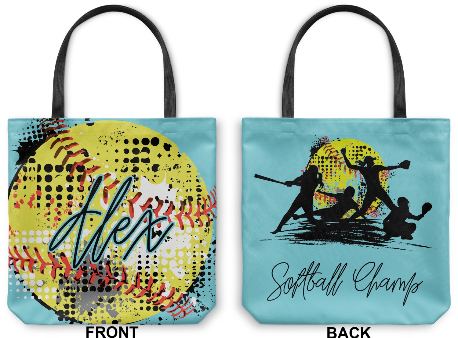 This design is a blast of fun colors. You'll find a light teal / turquoise, bright yellow-green, red-orange, and black. The main image is a softball with splatters around it creating a feeling of movement. The coordinating design displays silhouettes of softball players that look like they're in action. This is the perfect fun design for any teen girl that just loves softball!