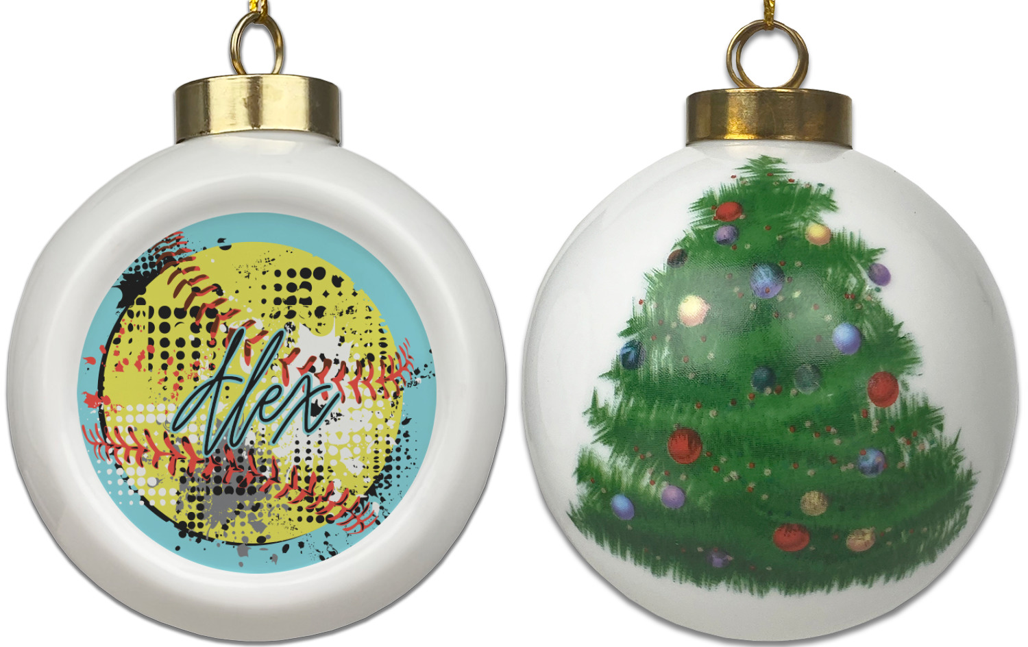 Our Christmas ornaments are a unique ceramic ball shape with a twist as it has a flat face to display your custom design! Select from one of our two design types - Christmas Tree or Poinsettia Garland - to adorn the curved back of your personal design. Each ornament measures 3H x 2.5W x 2D accompanied with a gold string accent for finishing touches to hang on your beautiful Christmas tree!