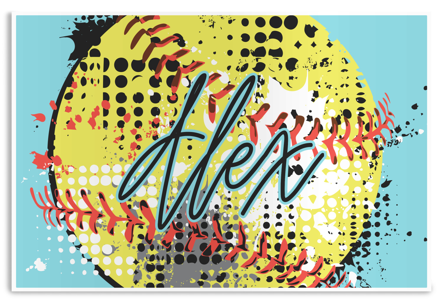 This design is a blast of fun colors. You'll find a light teal / turquoise, bright yellow-green, red-orange, and black. The main image is a softball with splatters around it creating a feeling of movement. The coordinating design displays silhouettes of softball players that look like they're in action. This is the perfect fun design for any teen girl that just loves softball!