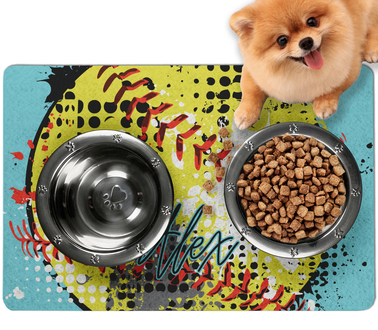 This dog bowl mat, fabricated from polyester, proudly displays your customized design on its top, while its bottom includes a non-slip rubber. This feature allows it to remain firmly in place, even when your dog spills his/her water. With 3 sizes available (18" x 12", 24" x 18", 30" x 24"), the pet food mat has ample space for both a food and water bowl for any sized dogs. Though specified for dogs' use, these mats are also a splendid option for cats.