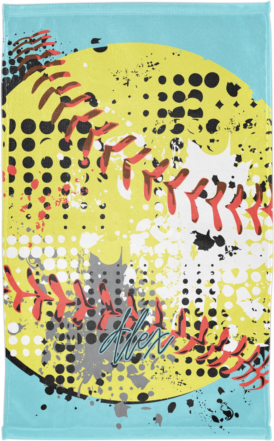 This design is a blast of fun colors. You'll find a light teal / turquoise, bright yellow-green, red-orange, and black. The main image is a softball with splatters around it creating a feeling of movement. The coordinating design displays silhouettes of softball players that look like they're in action. This is the perfect fun design for any teen girl that just loves softball!