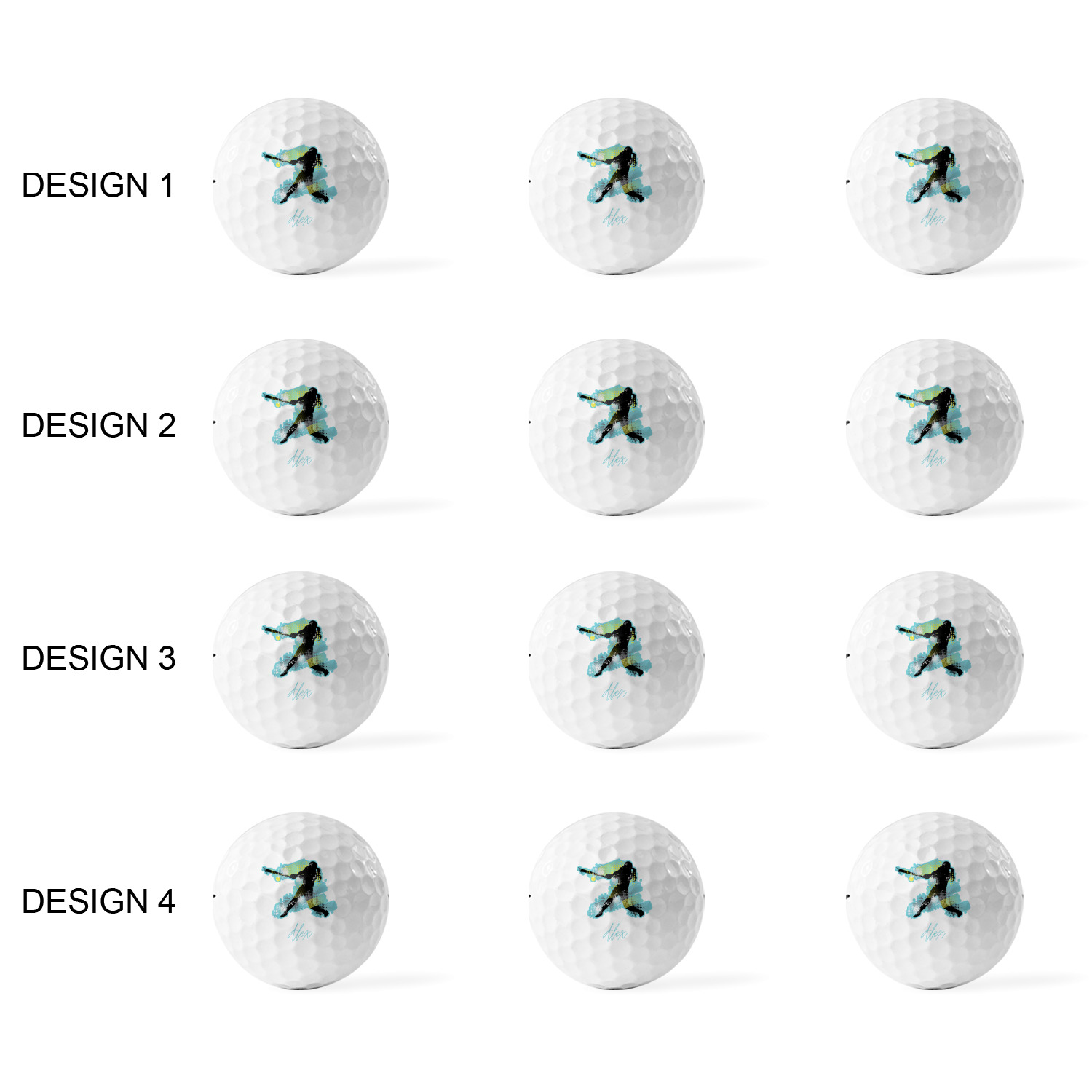 Printed in a 7/8" circle on each ball, you can customize these with our design studio or use your own designs. For a set of 3 you can design each one individually, for a set of 12 you will be able to use 4 unique designs and will receive 3 balls with each design.