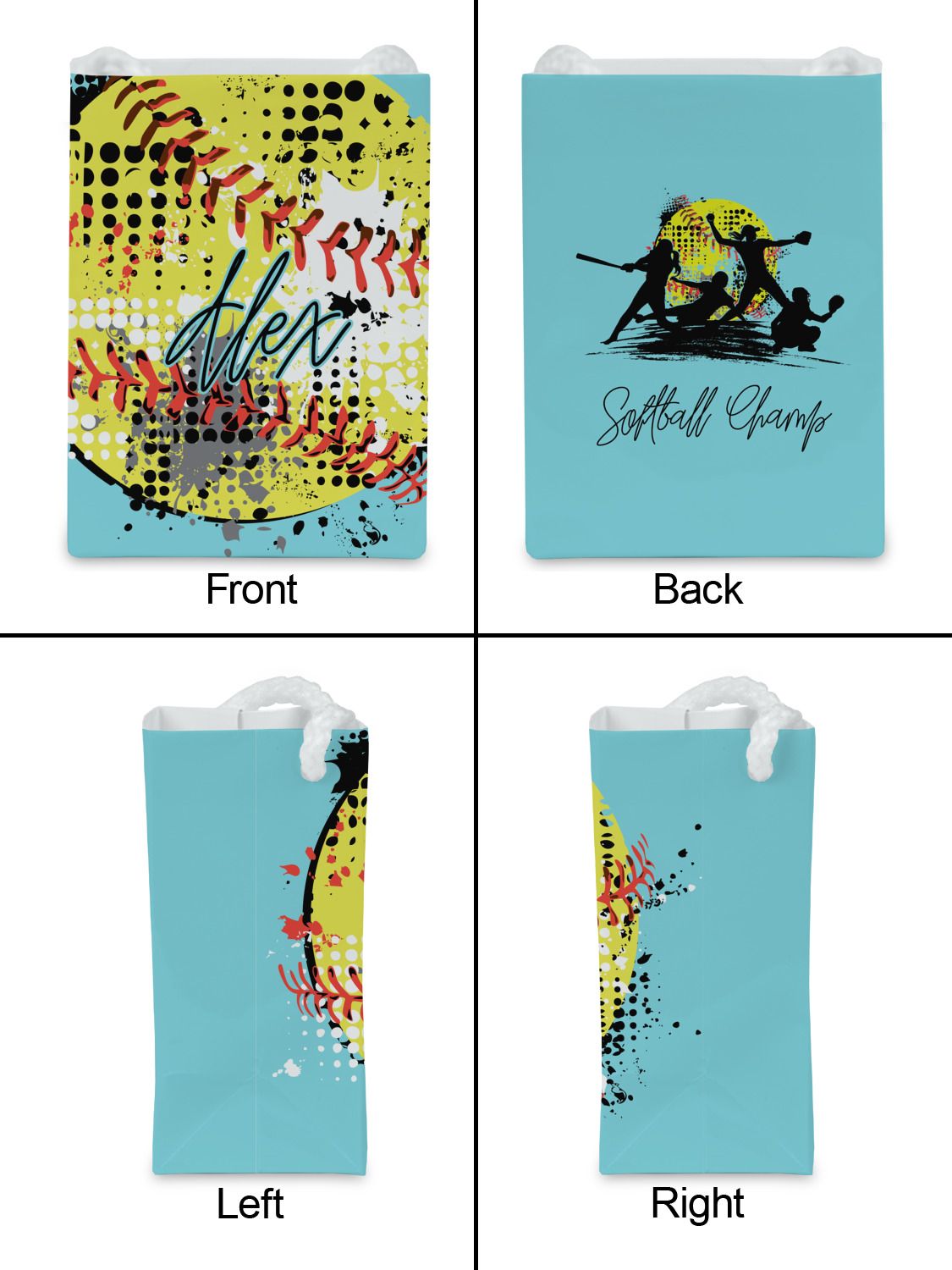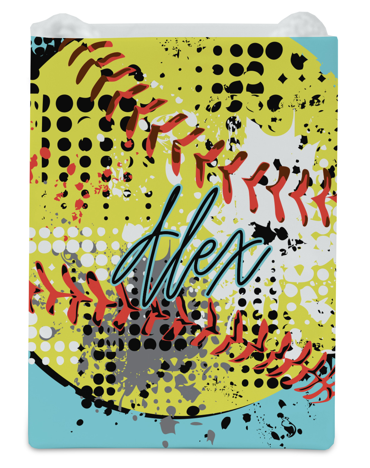This design is a blast of fun colors. You'll find a light teal / turquoise, bright yellow-green, red-orange, and black. The main image is a softball with splatters around it creating a feeling of movement. The coordinating design displays silhouettes of softball players that look like they're in action. This is the perfect fun design for any teen girl that just loves softball!