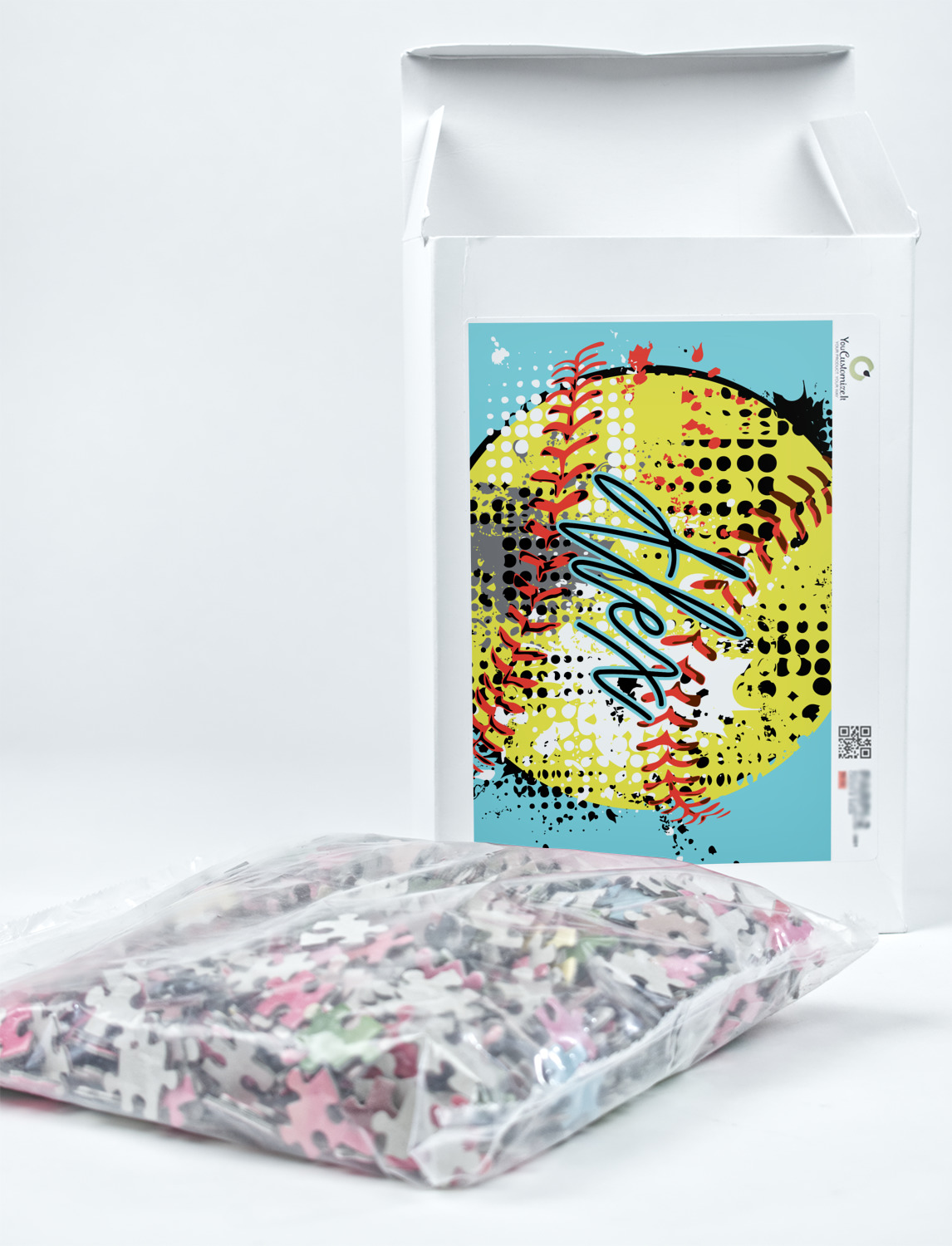 You can also upload your logo or art that you or your kids drew. To create more challenging jigsaw puzzles, you can create a pattern from with your logo or artwork. You can also add other elements such as text or personalization.