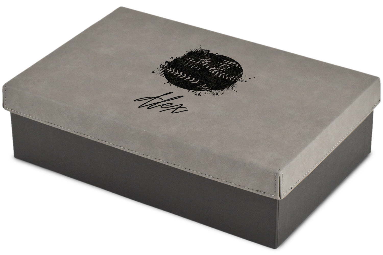 These gift boxes are available in 3 different sizes to accommodate various sized gifts. Available in gray as a neutral color for any occasion as well as to showcase your design boldly. Engraved with a laser this high quality paper board and faux leather gift box is unique and makes any gift stand out.