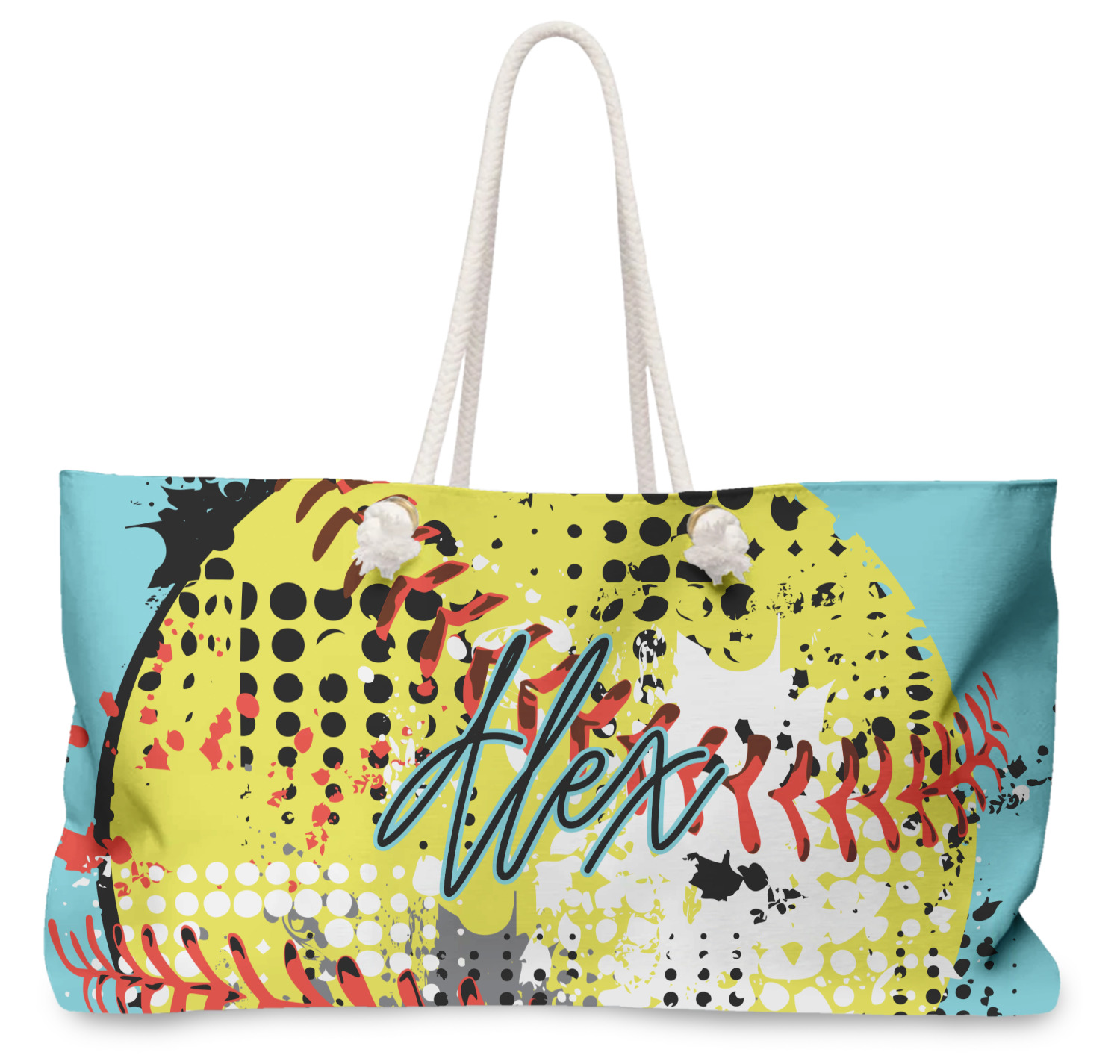 This design is a blast of fun colors. You'll find a light teal / turquoise, bright yellow-green, red-orange, and black. The main image is a softball with splatters around it creating a feeling of movement. The coordinating design displays silhouettes of softball players that look like they're in action. This is the perfect fun design for any teen girl that just loves softball!