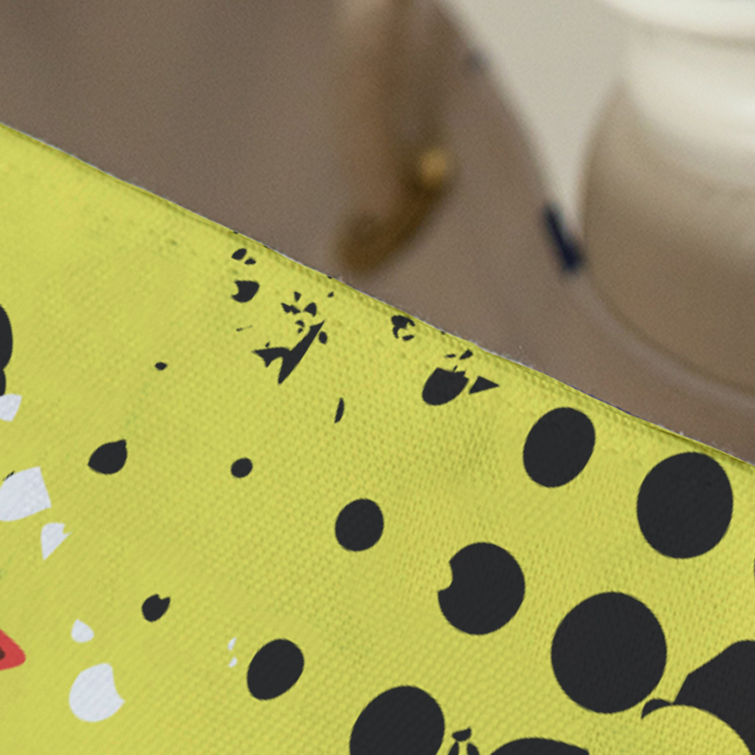 These large totes are handmade i.e. printed, cut and sewn right here in the USA. The canvas like material is printed using dye sublimation; the fabric is then cut and sewn along with a beautiful cream colored lining (to match the rope handles). The brass grommets are then added and the cream colored rope if fed through the grommets and knotted.