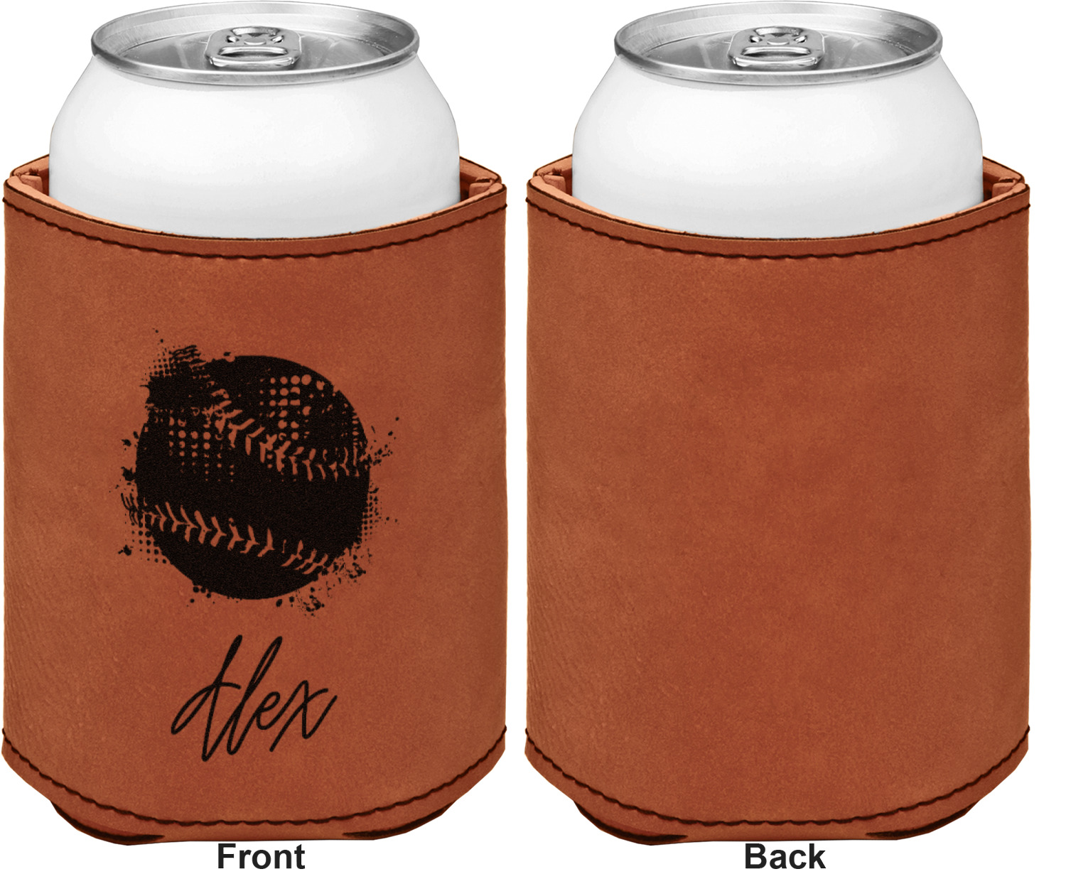 This can sleeve is made from a cognac-brown leatherette and stitched with a sturdy, black thread. A slim padding lines the inside of your can sleeve to allow for a better fit once your drink is inserted. The sleeve itself measures at 4 by 4.5 inches, allowing this custom can sleeve to accommodate most canned drinks. Your personalized design can be engraved on the front and back, or solely the front. When laser-engraved, your design appears as a black coloration which contrasts the leatherette nicely.