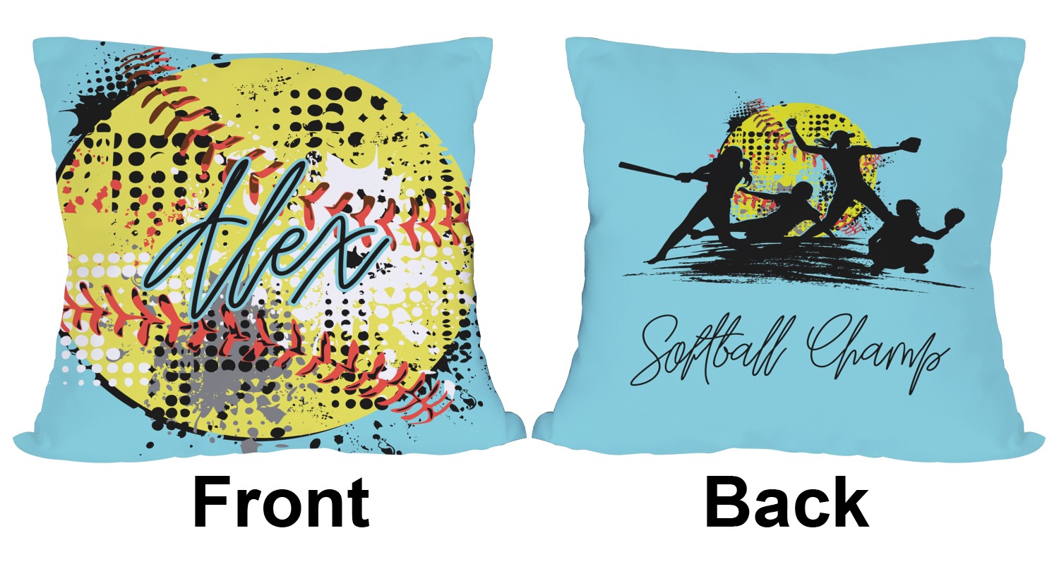 This design is a blast of fun colors. You'll find a light teal / turquoise, bright yellow-green, red-orange, and black. The main image is a softball with splatters around it creating a feeling of movement. The coordinating design displays silhouettes of softball players that look like they're in action. This is the perfect fun design for any teen girl that just loves softball!