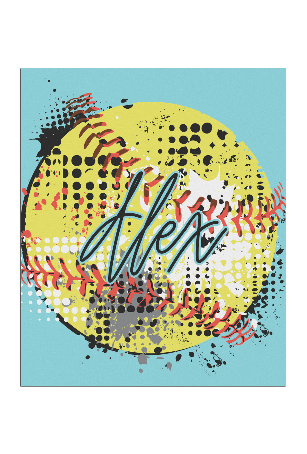 This design is a blast of fun colors. You'll find a light teal / turquoise, bright yellow-green, red-orange, and black. The main image is a softball with splatters around it creating a feeling of movement. The coordinating design displays silhouettes of softball players that look like they're in action. This is the perfect fun design for any teen girl that just loves softball!