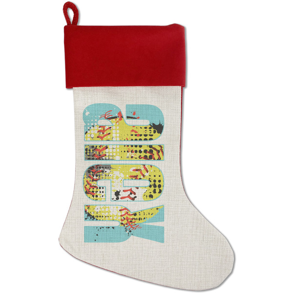 Our classic red stockings are made from a soft, yet durable polyester material perfect for any stocking stuffer! The front of our Christmas stockings have a linen front that boldly displays your custom design accented with a lush red cuff resting all around the stocking. Each stocking is approximately 18x12 with a durable cotton rope loop for hanging.