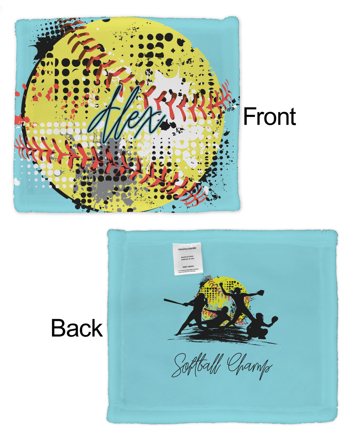 This design is a blast of fun colors. You'll find a light teal / turquoise, bright yellow-green, red-orange, and black. The main image is a softball with splatters around it creating a feeling of movement. The coordinating design displays silhouettes of softball players that look like they're in action. This is the perfect fun design for any teen girl that just loves softball!