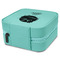This square zippered travel jewelry box is made from leatherette and is available in four colors - classic cognac / rawhide, a beautiful teal. navy blue or pink. The tan colored soft velvet inside has compartments and hooks for all your jewelry - rings, chains, earrings, bangles etc.