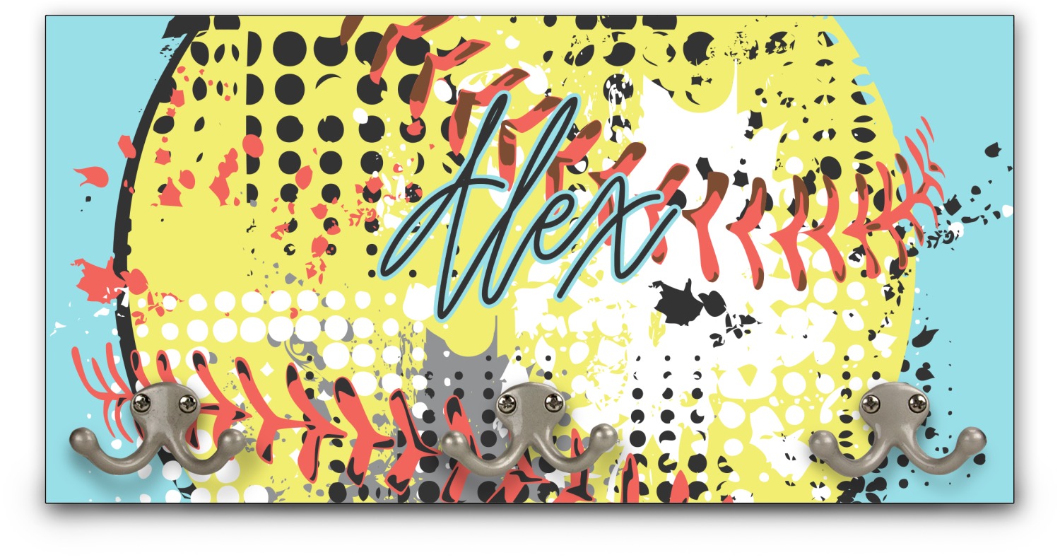 This coat rack is the perfect way to add some personality to your wall or entryway. The board is made of a strong maple that is approximately 16" x 8". The three 2-prong hooks are a sturdy metal that have three screws attaching them to the board. Your design is printed right onto the front of the board while the back and sides are a simple black.