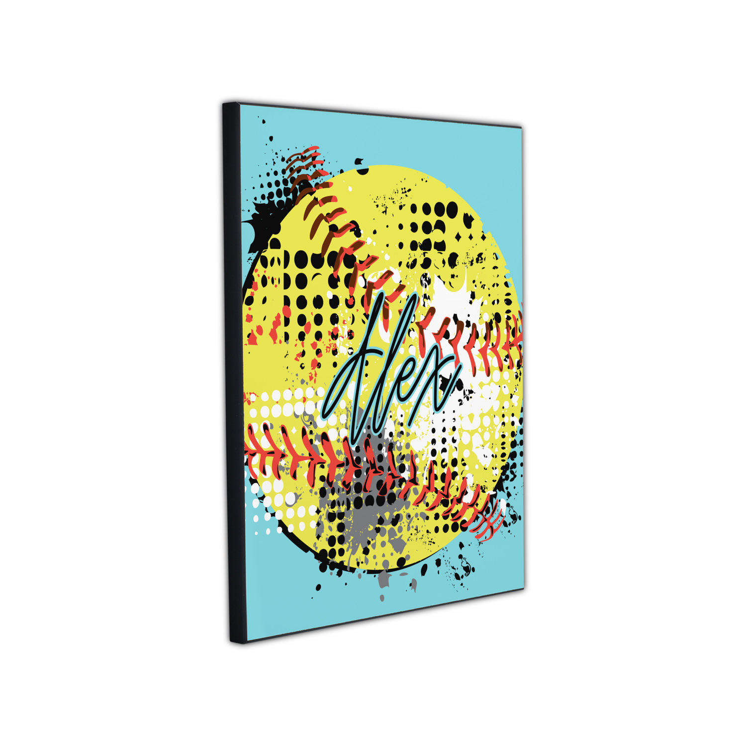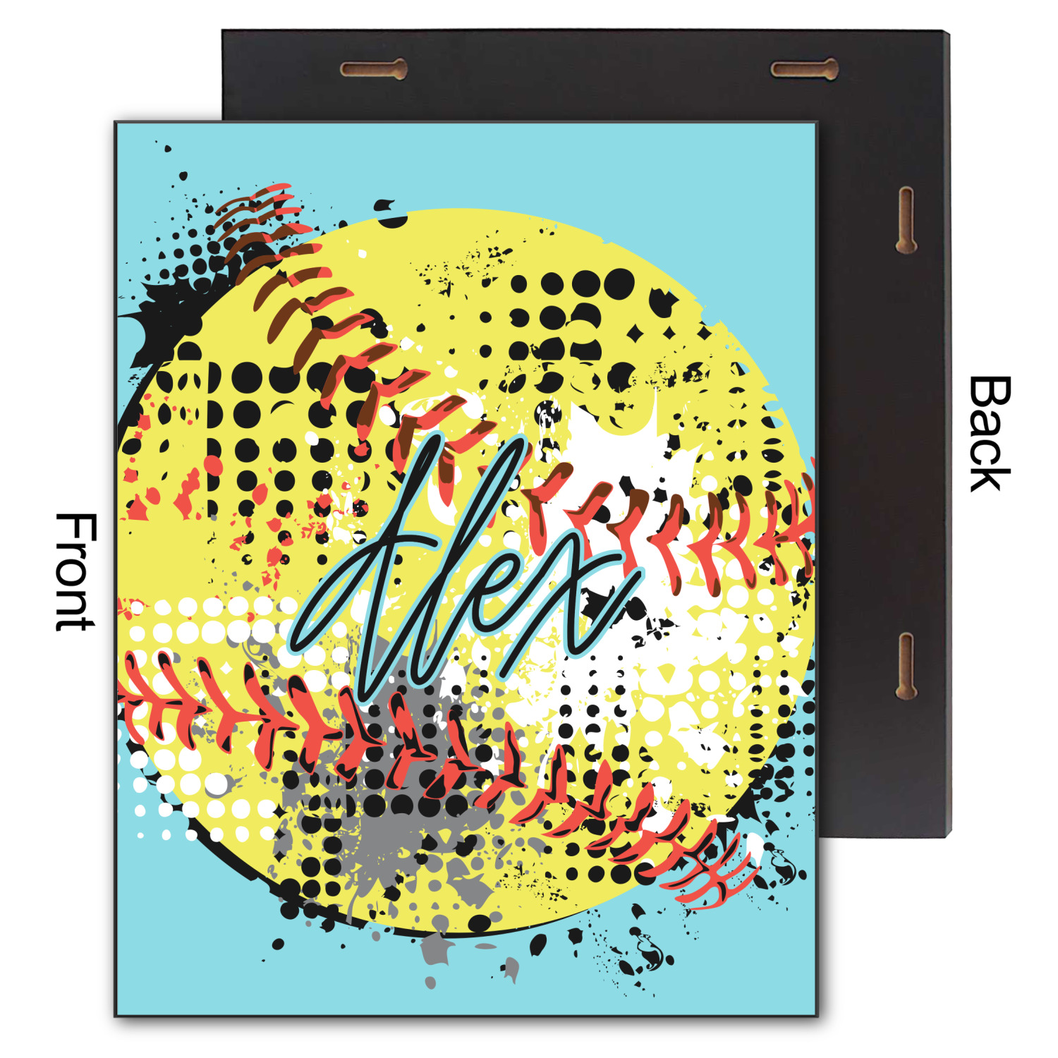 This design is a blast of fun colors. You'll find a light teal / turquoise, bright yellow-green, red-orange, and black. The main image is a softball with splatters around it creating a feeling of movement. The coordinating design displays silhouettes of softball players that look like they're in action. This is the perfect fun design for any teen girl that just loves softball!