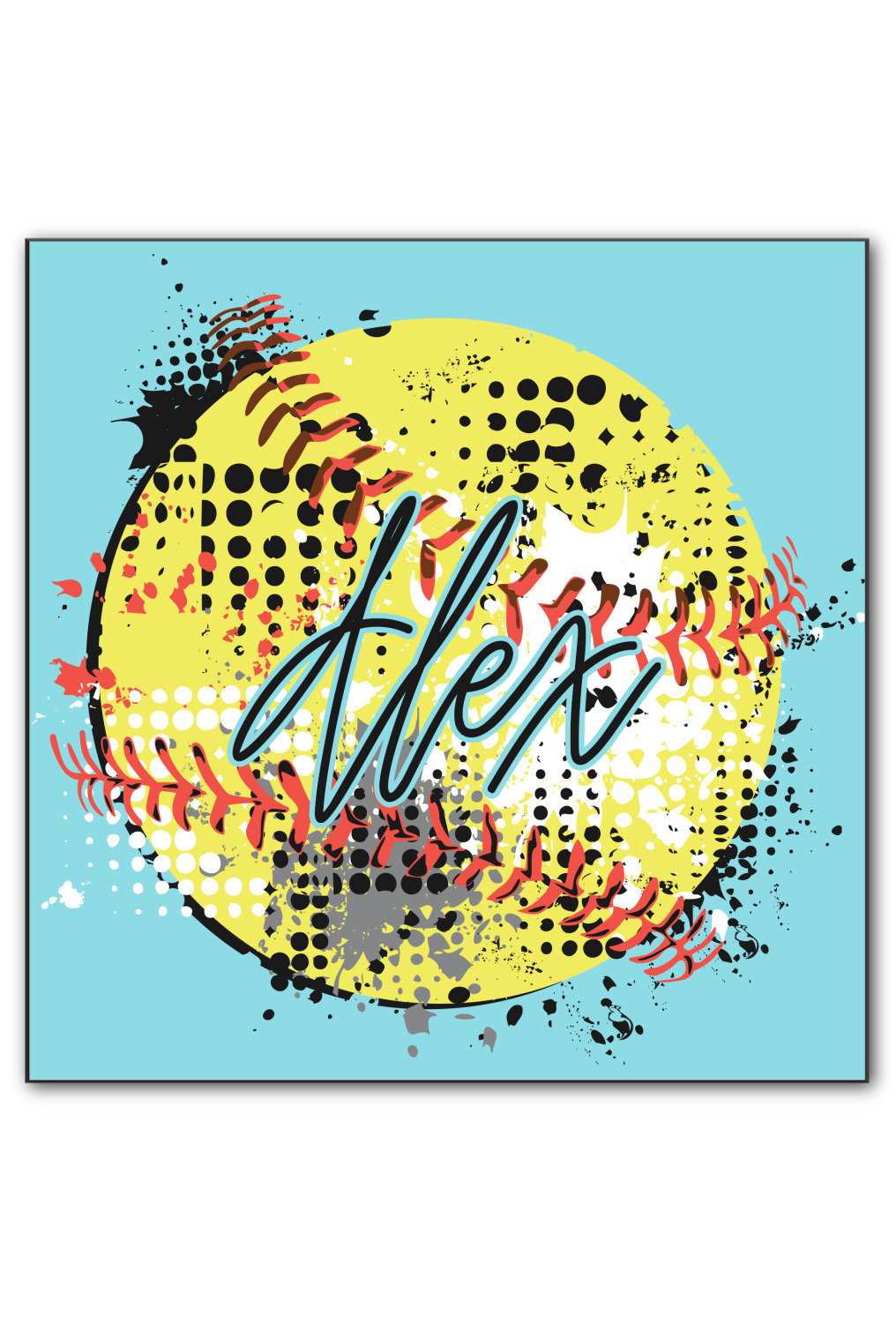 This design is a blast of fun colors. You'll find a light teal / turquoise, bright yellow-green, red-orange, and black. The main image is a softball with splatters around it creating a feeling of movement. The coordinating design displays silhouettes of softball players that look like they're in action. This is the perfect fun design for any teen girl that just loves softball!