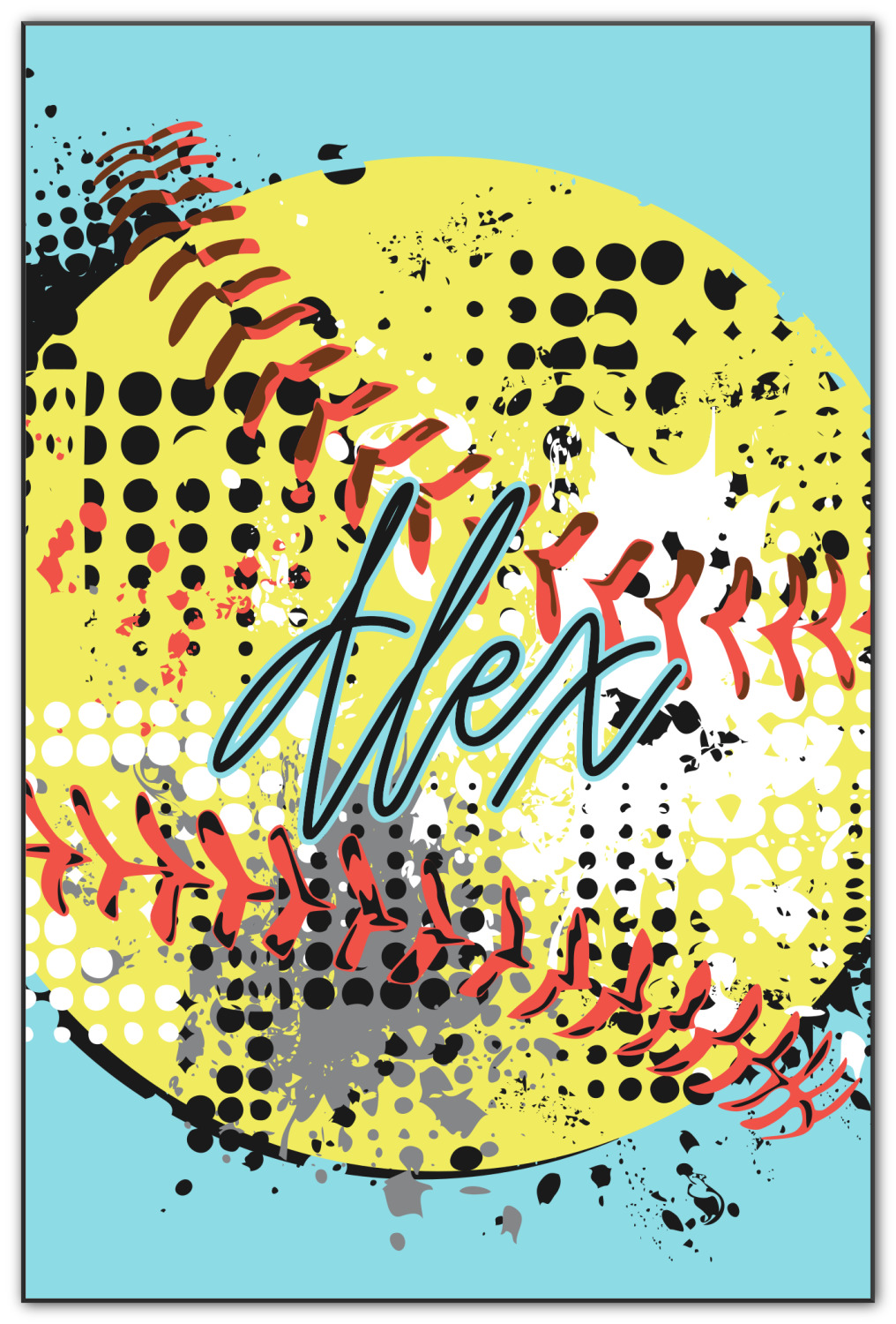 This design is a blast of fun colors. You'll find a light teal / turquoise, bright yellow-green, red-orange, and black. The main image is a softball with splatters around it creating a feeling of movement. The coordinating design displays silhouettes of softball players that look like they're in action. This is the perfect fun design for any teen girl that just loves softball!