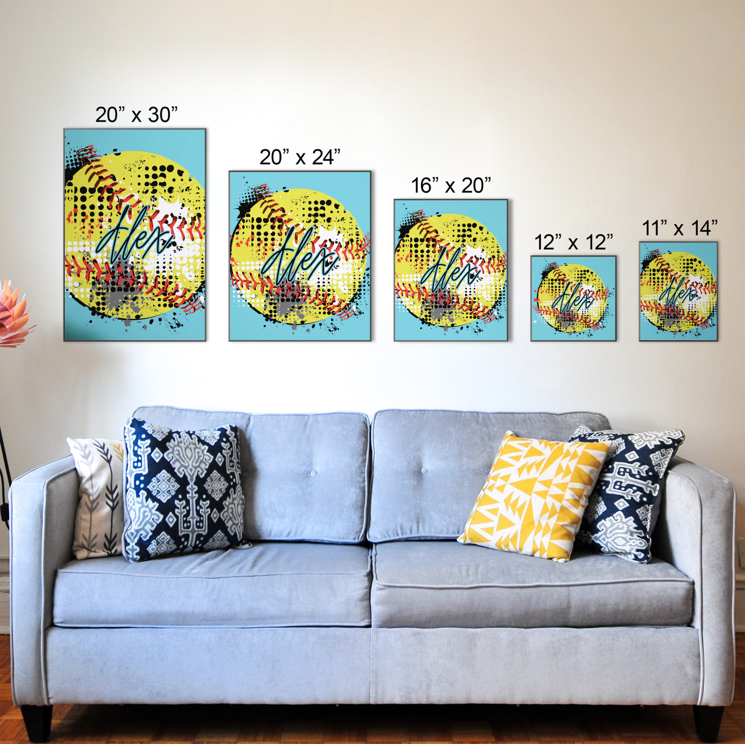 This design is a blast of fun colors. You'll find a light teal / turquoise, bright yellow-green, red-orange, and black. The main image is a softball with splatters around it creating a feeling of movement. The coordinating design displays silhouettes of softball players that look like they're in action. This is the perfect fun design for any teen girl that just loves softball!