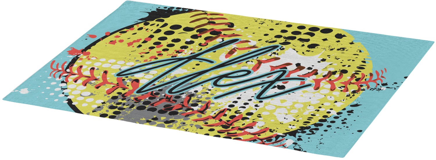 This design is a blast of fun colors. You'll find a light teal / turquoise, bright yellow-green, red-orange, and black. The main image is a softball with splatters around it creating a feeling of movement. The coordinating design displays silhouettes of softball players that look like they're in action. This is the perfect fun design for any teen girl that just loves softball!