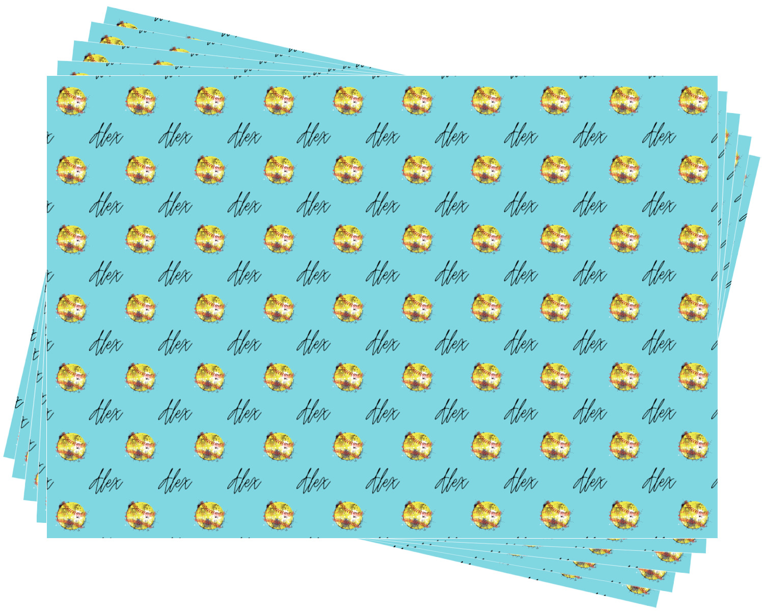 This design is a blast of fun colors. You'll find a light teal / turquoise, bright yellow-green, red-orange, and black. The main image is a softball with splatters around it creating a feeling of movement. The coordinating design displays silhouettes of softball players that look like they're in action. This is the perfect fun design for any teen girl that just loves softball!