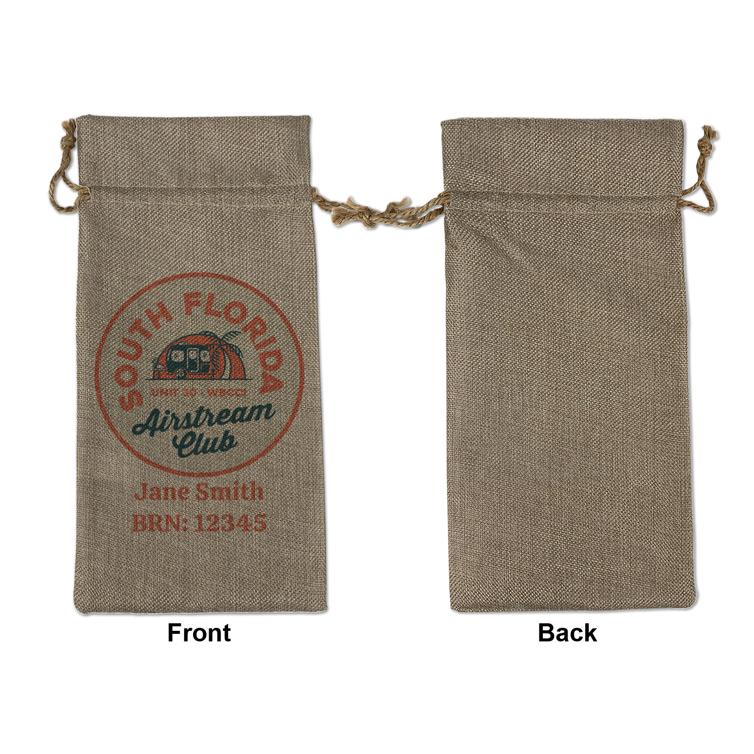 We sell our Burlap Gift Bags in 3 variant sized bags. Made with burlap polyester, each personalized bag can be secured with a twine drawstring pull. Your custom design is available to print on one side or both sides - completely up to you! The sizes of the bags measure approximately 4.5" x 6.5" for the smallest size, 6.5" x 8.0" for the medium size, and 6.5" x 13.5" for the large-sized bag.