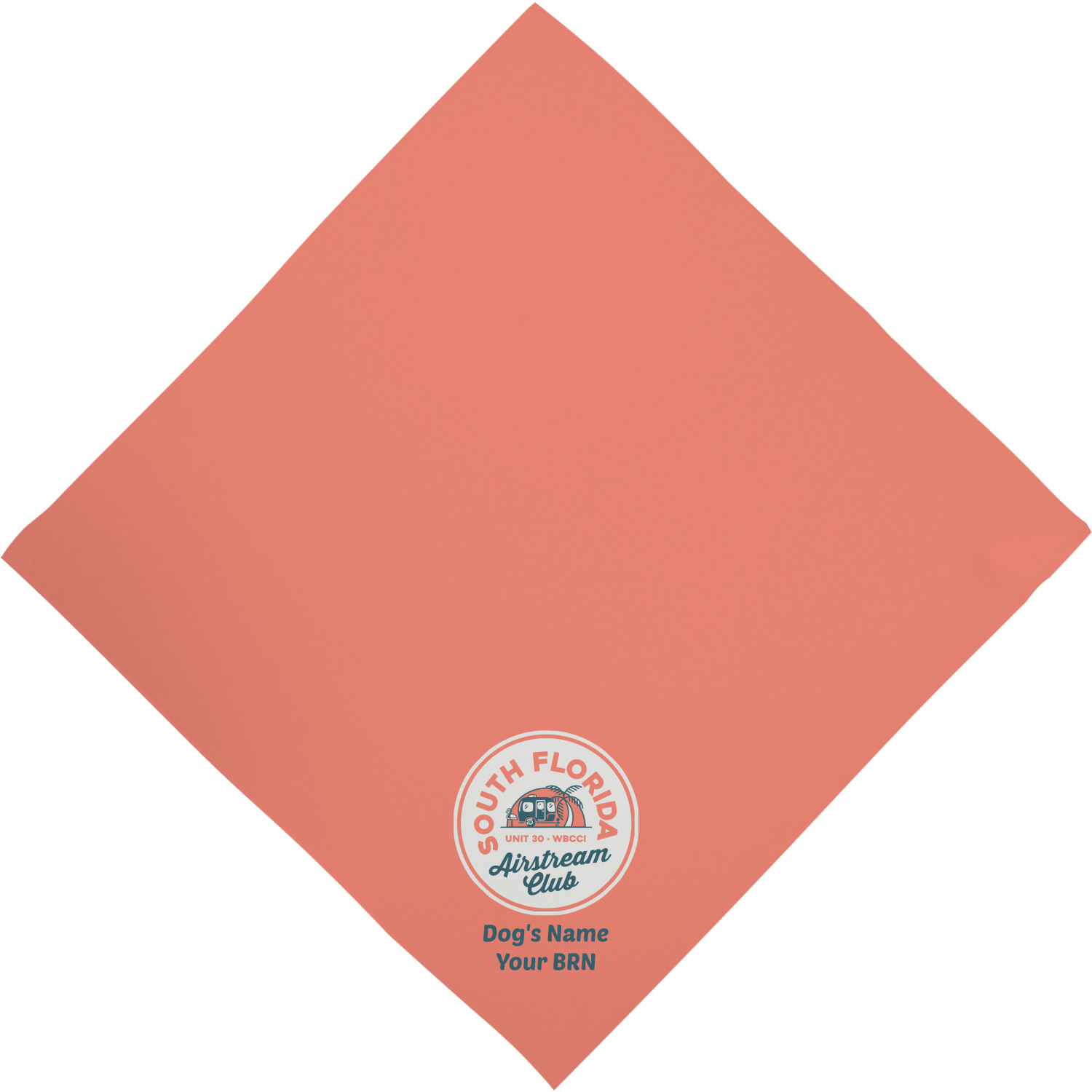This beautiful pet bandana really is the perfect accessory. It is made from a silky feeling polyester and measures at approximately 23" x 23". Your personalization will be printed on a diagonal, so that you are able to read the personalization when folded into a triangle. This bandana fits best on large dogs, but can be folded smaller if there is no personalized text to fit smaller pets.