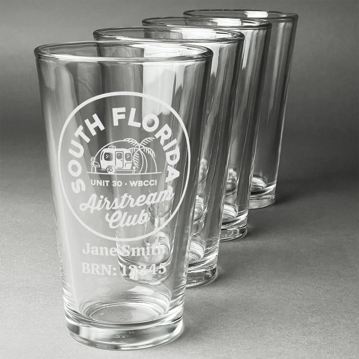 Available in a single glass or a set of 4 - each glass will be custom engraved with your design. Each glass holds 16 oz and measure 5.75"H x 3.5"W.